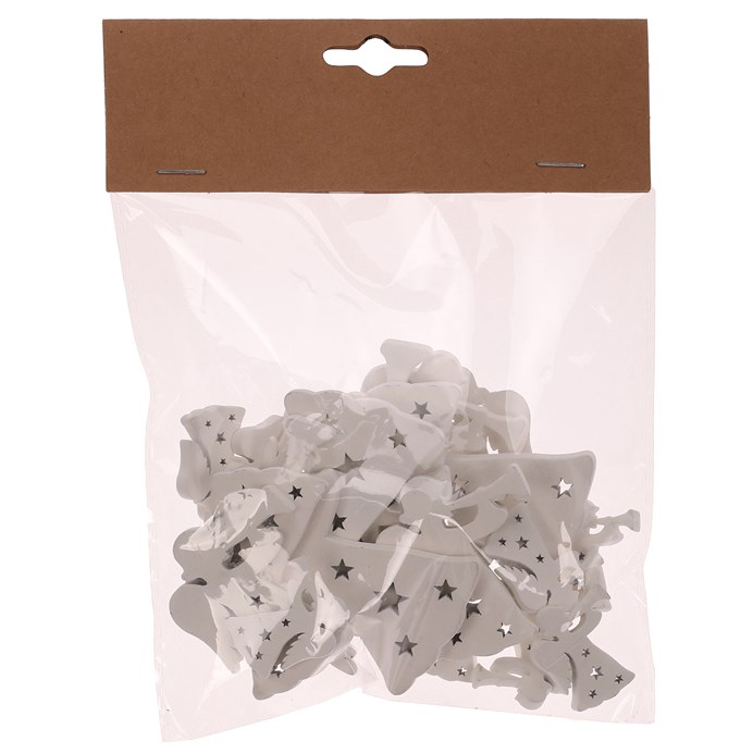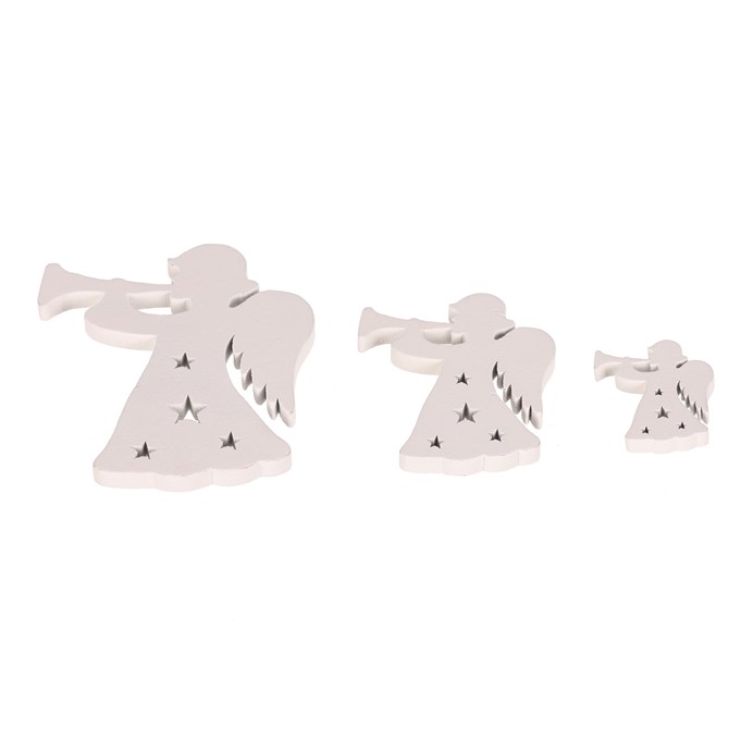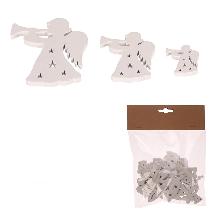 Dotaz na produktZkrášlete si vaše sváteční prostředí i díky dřevěným vánočním ozdobám ve tvaru andílků s trumpetou. Jsou všechny v bílé barvě a balené po 18 kusech v sáčku, kde najdete mix tří různých velikostí. Je už jen na fantazii a dekorativních schopnostech každého z vás, jak s těmito ozdobami naloží. Každopádně jsou výborným základem pro tvorbu různorodých svátečních aranží, dotvářených vlastníma rukama.