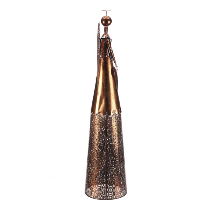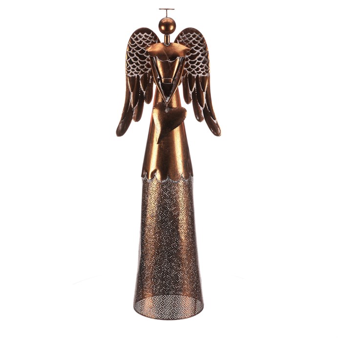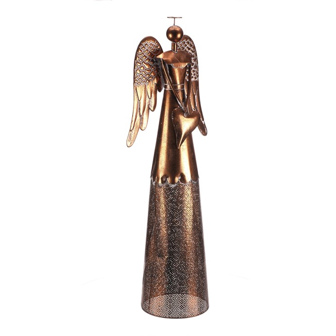 Dotaz na produkt Na splátky ještě dnesKovový anděl ve svátečním měděném odstínu bude impozantní dekorací pro váš domov. Drží v rukou srdce jako symbol lásky a pohody, což z něj činí ideální ozdobu pro vánoční období. Má krásně tvarovaná křídla, kulatou hlavičku a spodní část šatů je průhledná, což umocňuje jeho eleganci. Díky výšce přibližně 105 cm upoutá pozornost a stane se úžasnou dominantou v každém interiéru, ať už bude umístěná na stole, komodě, okně nebo na podlaze.