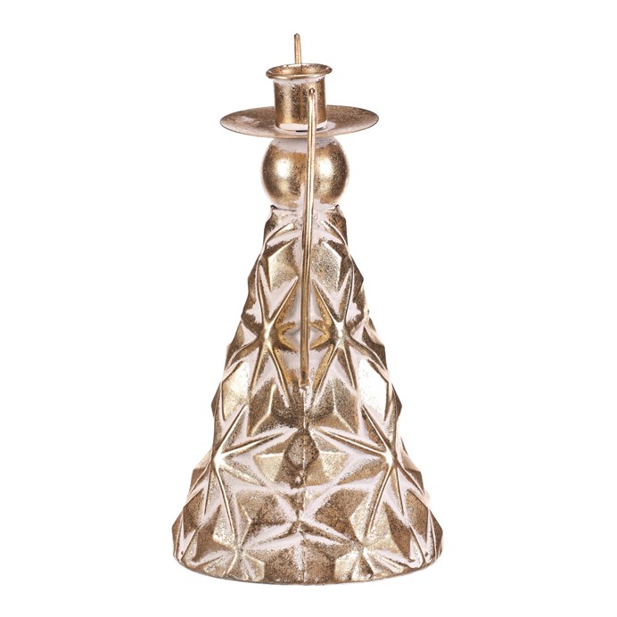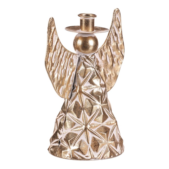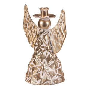 Dotaz na produktTento kovový anděl, vysoký 22 cm, v elegantním zlatém provedení je dokonalou stolní dekorací pro Vánoce. Jeho kulatá hlavička je vybavena kalíškem, kam můžete vložit kónickou svíčku, čímž snadno vytvoříte okouzlující slavnostní atmosféru se třpytivým světlem. Zvoncový tvar anděla a propracovaný design dodávají celé kompozici půvab a sofistikovanost, která skvěle oživí váš vánoční stůl či polici.