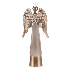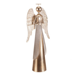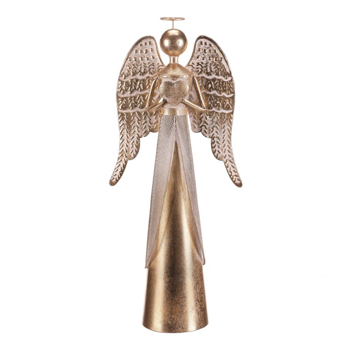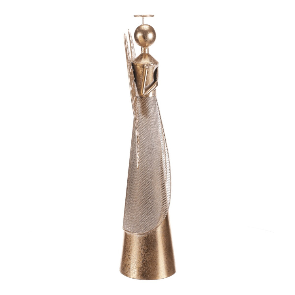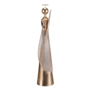 Dotaz na produkt Na splátky ještě dnesKovový anděl v zářivém zlatém odstínu bude nádhernou vánoční dekorací pro váš domov. Se srdcem v rukou a elegantně tvarovanými křídly působí jemně a slavnostně. Díky výšce 57 cm se stane výrazným prvkem na stole, polici či komodě a dodá vašemu interiéru kouzlo svátečních dní.