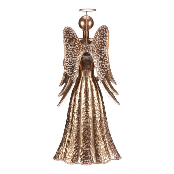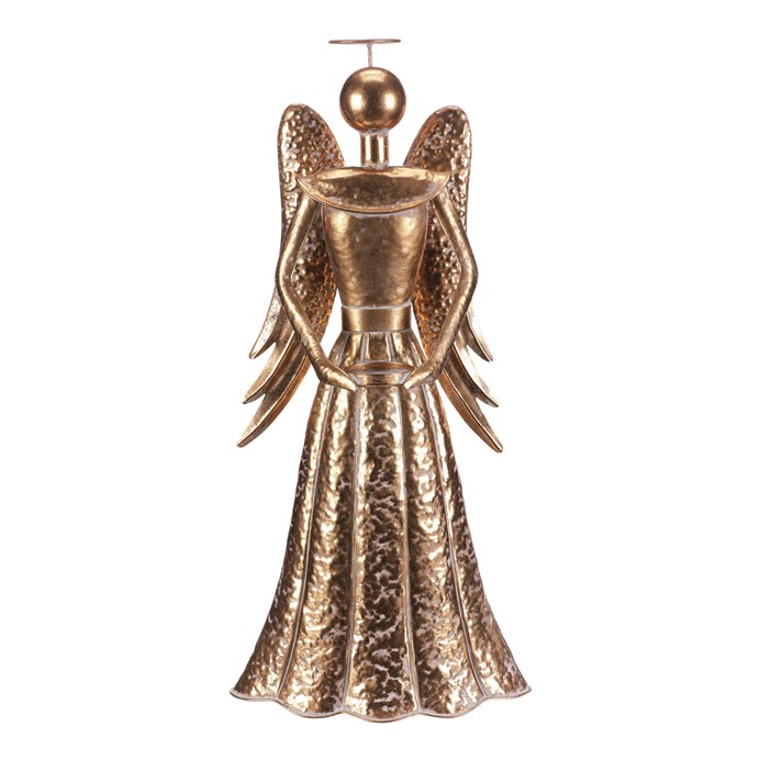 Dotaz na produkt Na splátky ještě dnesStolní dekorace v podobě kovového anděla ve zlaté barvě bude krásnou vánoční ozdobou. Svým provedením a s výškou 60 cm se bude vyjímat mezi ostatními dekoracemi a přinese do prostoru kouzelnou sváteční atmosféru. V rukou navíc drží kalíšek na vložení čajové svíčky, díky čemuž můžete vytvořit neodolatelný světelný efekt.