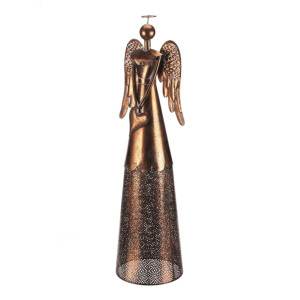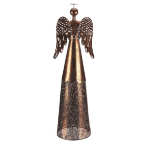 Dotaz na produkt Na splátky ještě dnesKovový anděl ve svátečním měděném odstínu bude impozantní dekorací pro váš domov. Drží v rukou srdce jako symbol lásky a pohody, což z něj činí ideální ozdobu pro vánoční období. Má krásně tvarovaná křídla, kulatou hlavičku a spodní část šatů je průhledná, což umocňuje jeho eleganci. Díky výšce přibližně 82 cm upoutá pozornost a stane se úžasnou dominantou v každém interiéru, ať už bude umístěná na stole, komodě, okně nebo na podlaze.
