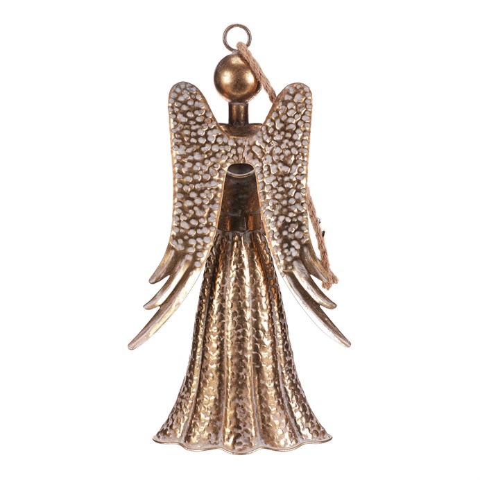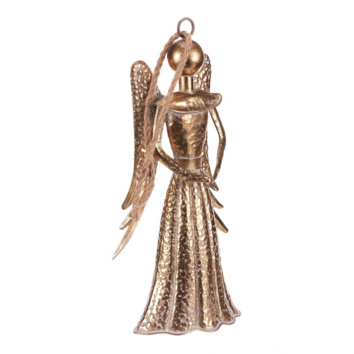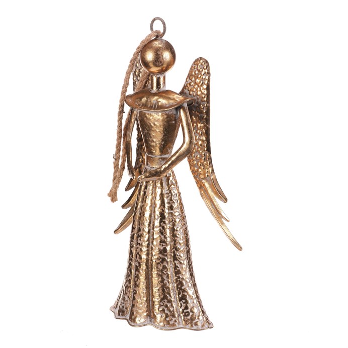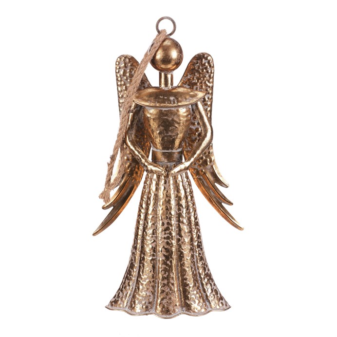 Dotaz na produkt Na splátky ještě dnesZávěsná dekorace v podobě kovového anděla ve zlaté barvě bude krásnou vánoční ozdobou. Svým provedením a velikostí se bude vyjímat mezi ostatními dekoracemi a přinese do prostoru kouzelnou sváteční atmosféru.