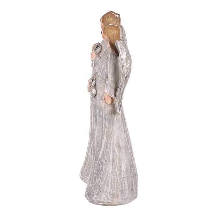 Dotaz na produktVyzdobte si své oblíbené místo šedou polyresinovou figurkou anděla se stříbrným srdcem v ruce a to v mixu 2 druhů. Tato elegantní soška představuje ochránce se symbolem lásky a přináší do vašeho prostoru nejen krásu, ale i hluboký symbolický význam. Anděl, držící srdce v ruce, připomíná svou siluetou dívku a má elegantní tvar, který dodá vašemu interiéru jemnou a přitažlivou atmosféru. Je ideální jako dekorace na poličku, stůl, komodu, okenní parapet a další místa ve vašem domě, kde vynikne svou krásou a významem. Tato nádherná figurka není jen pouhou ozdobou, ale také symbolizuje lásku, péči a ochranu. Proto bude i skvělým dárkem pro vaši milovanou osobu, která ocení nejen její estetickou hodnotu, ale i silný duchovní význam.