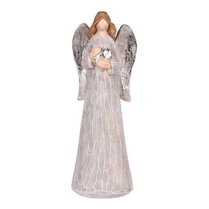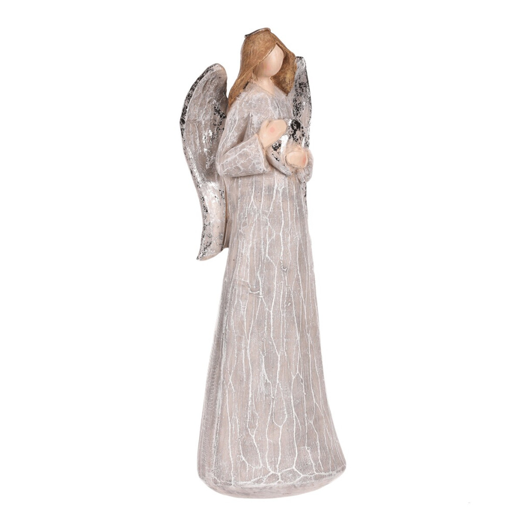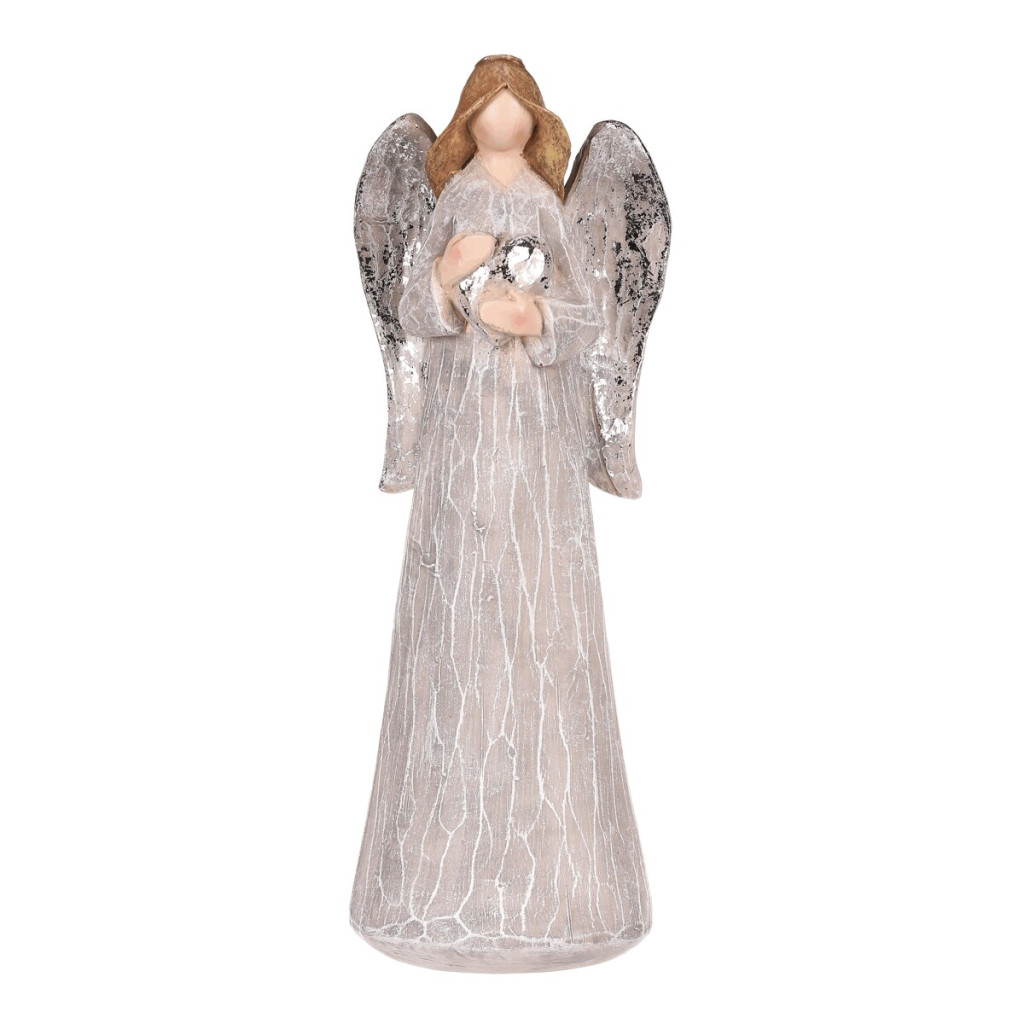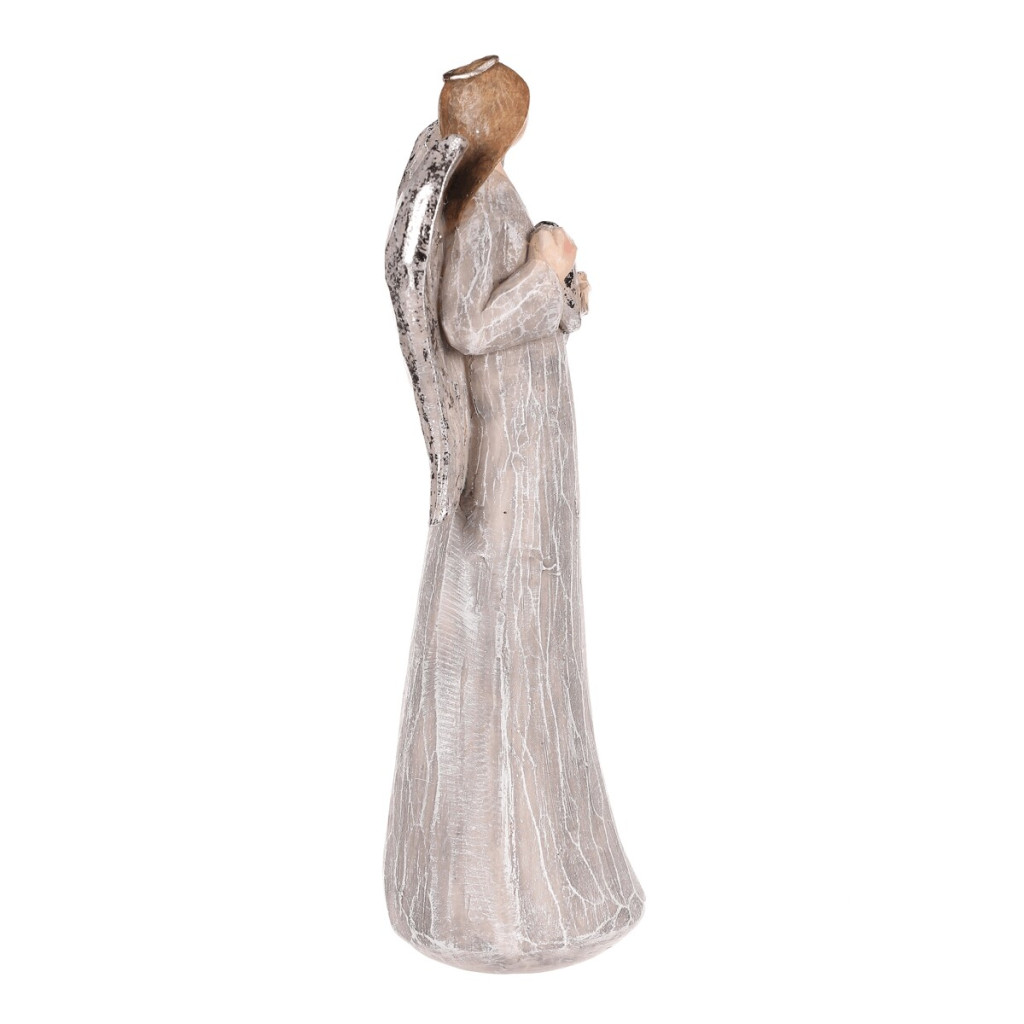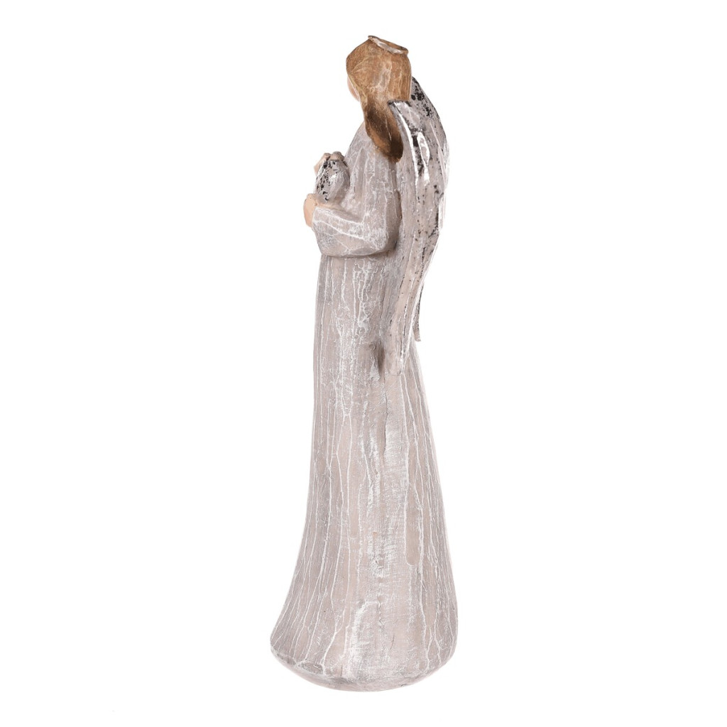 Dotaz na produktVyzdobte si své oblíbené místo šedou polyresinovou figurkou anděla se stříbrným srdcem v ruce. Tato elegantní soška představuje ochránce se symbolem lásky a přináší do vašeho prostoru nejen krásu, ale i hluboký symbolický význam. Anděl, držící srdce v ruce, připomíná svou siluetou dívku a má elegantní tvar, který dodá vašemu interiéru jemnou a přitažlivou atmosféru. Je ideální jako dekorace na poličku, stůl, komodu, okenní parapet a další místa ve vašem domě, kde vynikne svou krásou a významem. Tato nádherná figurka není jen pouhou ozdobou, ale také symbolizuje lásku, péči a ochranu. Proto bude i skvělým dárkem pro vaši milovanou osobu, která ocení nejen její estetickou hodnotu, ale i silný duchovní význam.