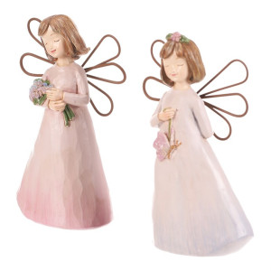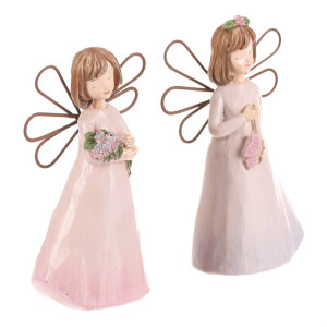 Dotaz na produktDekorativní anděl vyrobený z polyresinu kombinuje jemné růžové odstíny s kovovými křídly v minimalistickém tvaru. Figurky jsou určeny k postavení a vnášejí do prostoru klidnou atmosféru díky jemnému výrazu a detailnímu zpracování květin a motýla. Povrch má hladkou strukturu s decentním leskem, který podtrhuje pastelové barvy šatů. Anděl je vhodný jako doplněk do interiérů s romantickým nebo vintage stylem, kde zvýrazní útulnost a osobitost prostoru.