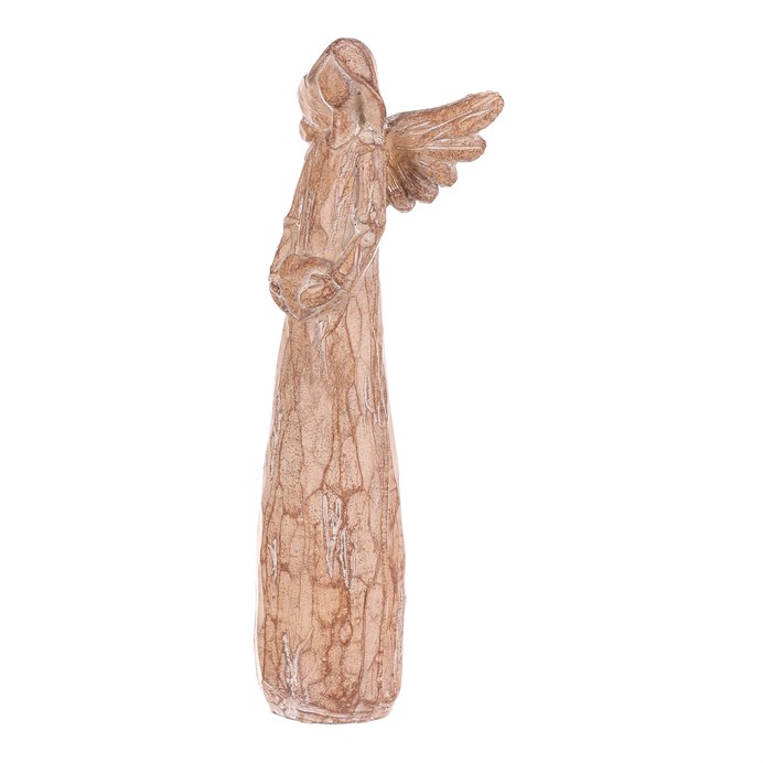 Dotaz na produktTato soška anděla o výšce 18 cm vypadá, jako by byla vytesána z dřevěného špalku, a přináší do vašeho domova symbol ochrany a lásky. Věrná imitace dřeva v hnědé barvě s dokonalou texturou dodává sošce přírodní a elegantní vzhled. Ideální dekorace pro postavení na poličku nebo stolek, která vytvoří klidnou a harmonickou atmosféru.