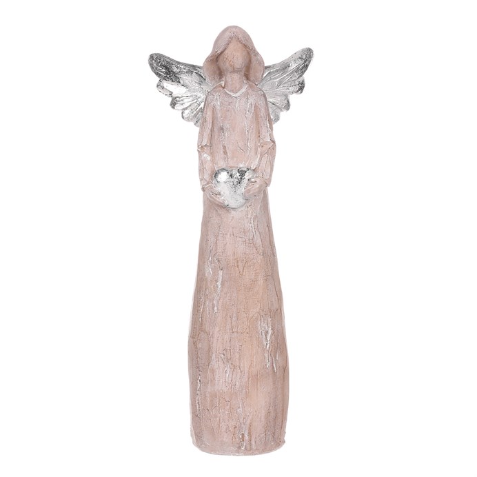 Dotaz na produktRádi byste rozšířili vaši sbírku ozdob o skutečně výjimečný kus dekorace a máte přitom slabost na sošky a postavičky? V tom případě bude pro vás jasnou volbou tento anděl z polyresinu se srdcem v rukou s imitací dřeva. Právě anděl je symbolem duchovnosti a naděje, jenž přinese do vašeho domova dotek přepychu a nadčasového kouzla. Jeho půvabné gesto a něžné vyjádření vytvářejí atmosféru klidu a míru v každém prostoru, kde se nachází. Bude sloužit jako vzácná připomínka neviditelných sil, které nás obklopují a chrání. Umístěte tuto sošku na významné místo ve vašem domě, kde bude přitahovat zraky návštěvníků i vás samotných. Její přítomnost oživí interiér a dodá mu vyšší úroveň elegance a duchovního rozměru.