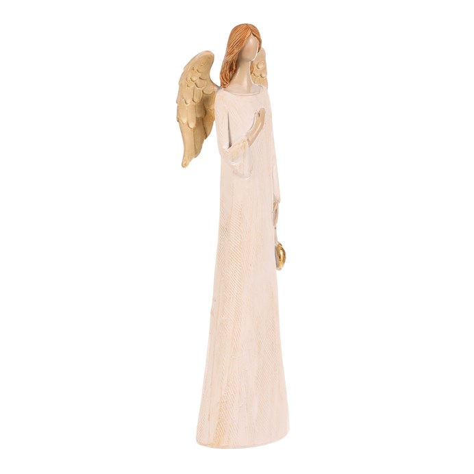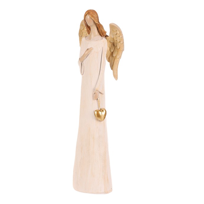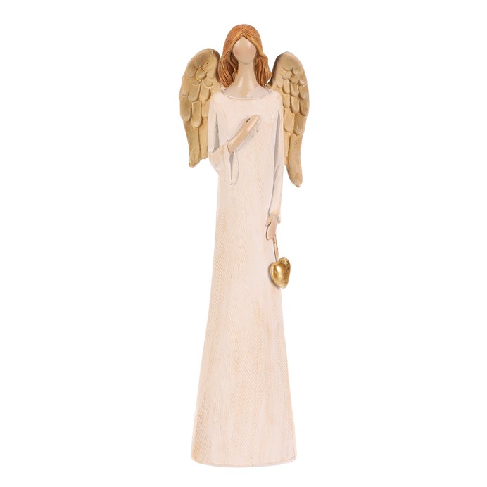 Dotaz na produktDekorační anděl v jemné béžové barvě držící zlaté srdce symbolizuje lásku a ochranu. Jeho něžná silueta krásně ladí s vánoční výzdobou a dodá interiéru klidnou atmosféru. Ideální na poličky, stoly i jako milý dárek z lásky.