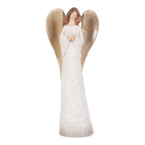 Dotaz na produktRádi byste rozšířili vaši sbírku ozdob o skutečně výjimečný kus dekorace a máte přitom slabost na sošky a postavičky? V tom případě bude pro vás jasnou volbou tento anděl z polyresinu se stříbrnými křídly a bílými šaty. Právě anděl je symbolem duchovnosti a naděje, jenž přinese do vašeho domova dotek přepychu a nadčasového kouzla. Jeho půvabné gesto a něžné vyjádření vytvářejí atmosféru klidu a míru v každém prostoru, kde se nachází. Bude sloužit jako vzácná připomínka neviditelných sil, které nás obklopují a chrání. Umístěte tuto sošku na významné místo ve vašem domě, kde bude přitahovat zraky návštěvníků i vás samotných. Její přítomnost oživí interiér a dodá mu vyšší úroveň elegance a duchovního rozměru.