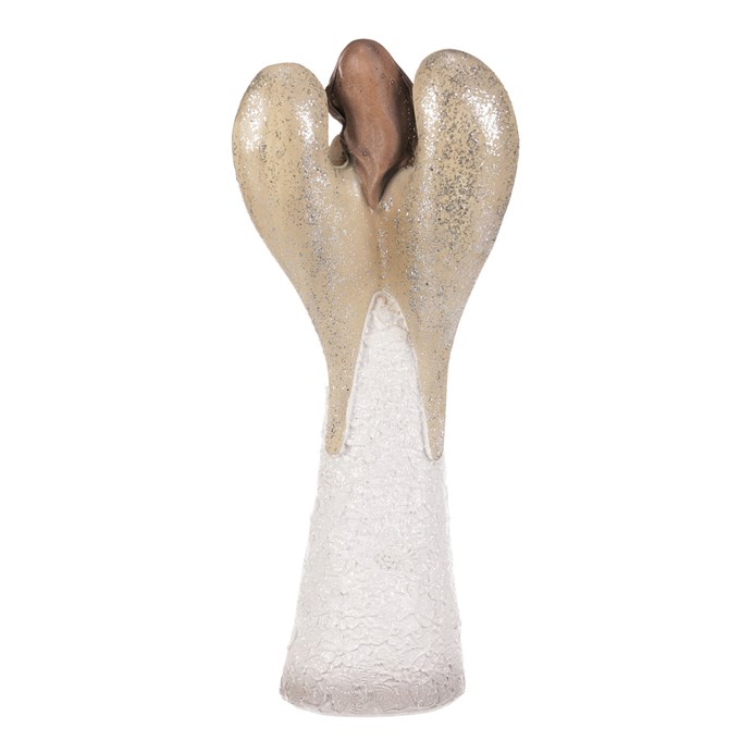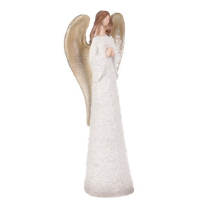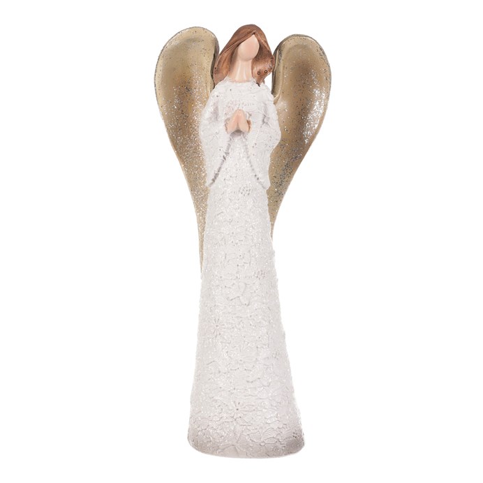 Dotaz na produktRádi byste rozšířili vaši sbírku ozdob o skutečně výjimečný kus dekorace a máte přitom slabost na sošky a postavičky? V tom případě bude pro vás jasnou volbou tento velký anděl z polyresinu se stříbrnými křídly a bílými šaty. Právě anděl je symbolem duchovnosti a naděje, jenž přinese do vašeho domova dotek přepychu a nadčasového kouzla. Jeho půvabné gesto a něžné vyjádření vytvářejí atmosféru klidu a míru v každém prostoru, kde se nachází. Bude sloužit jako vzácná připomínka neviditelných sil, které nás obklopují a chrání. Umístěte tuto sošku na významné místo ve vašem domě, kde bude přitahovat zraky návštěvníků i vás samotných. Její přítomnost oživí interiér a dodá mu vyšší úroveň elegance a duchovního rozměru.