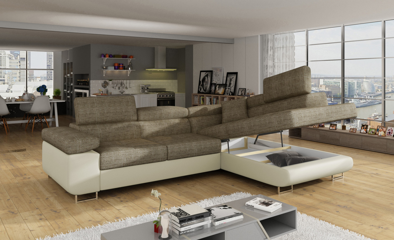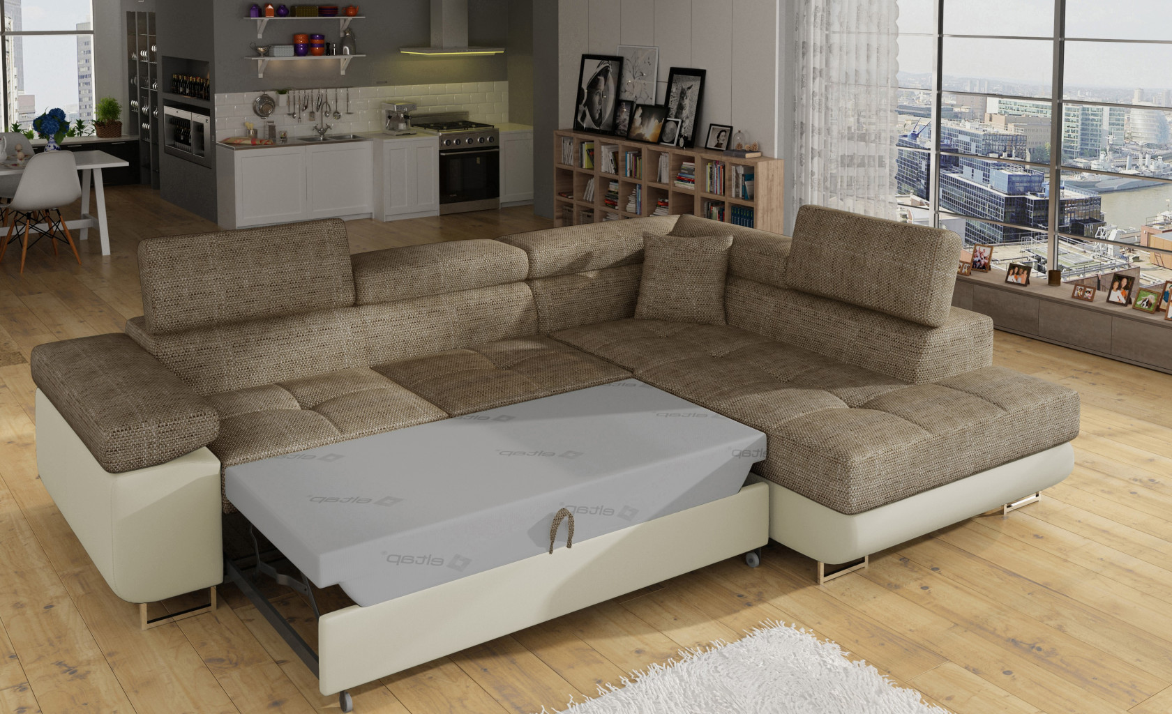 Dotaz na produkt Na splátky ještě dnesAnton je multifunkční a prostorná rohová rozkládací pohovka vyrobená v moderním stylu. Je synonymem pro vysokou kvalitu a maximální pohodlí, a to díky širokému sedáku s hloubkou 60 cm a extrémně elastické pěně T30. Anton s rozměry 275 x 202 x 90 cm a velkou spací plochou 125 x 193 cm je zárukou dobrého nočního spánku. Nábytek má také velký úložný prostor na ložní prádlo. Maximální pocit pohodlí je ovlivněn mimo jiné vysokými, nastavitelnými opěrkami hlavy, 28 centimetrů širokými područkami a 9 cm vysokými kovovými nohami. Pokud vás zajímá, co dalšího Anton nabízí, doporučujeme vám vybrat si naši rohovou rozkládací pohovku. Látky: Berlin 03, Soft 33