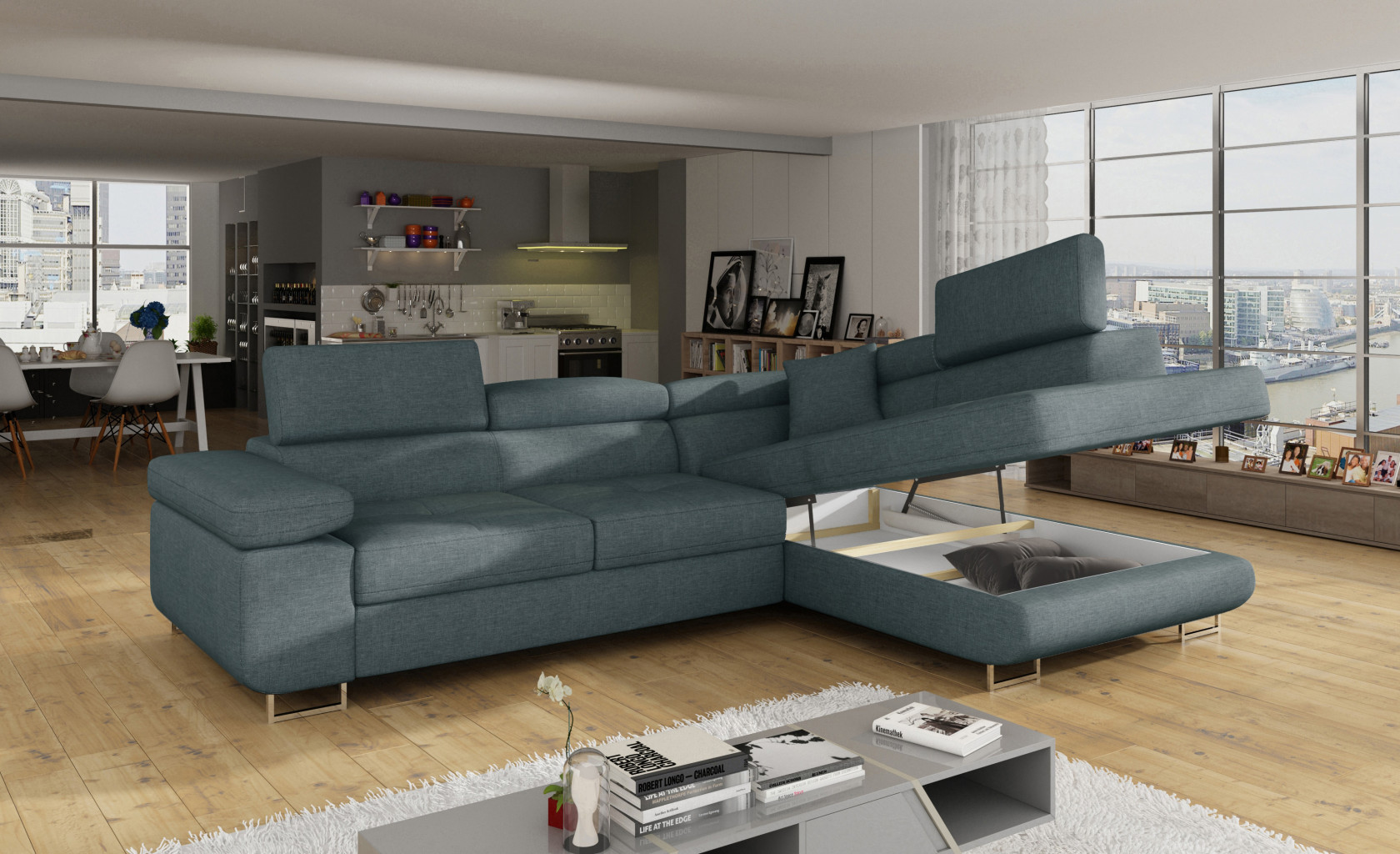 Dotaz na produkt Na splátky ještě dnesAnton je multifunkční a prostorná rohová rozkládací pohovka vyrobená v moderním stylu. Je synonymem pro vysokou kvalitu a maximální pohodlí, a to díky širokému sedáku s hloubkou 60 cm a extrémně elastické pěně T30. Anton s rozměry 275 x 202 x 90 cm a velkou spací plochou 125 x 193 cm je zárukou dobrého nočního spánku. Nábytek má také velký úložný prostor na ložní prádlo. Maximální pocit pohodlí je ovlivněn mimo jiné vysokými, nastavitelnými opěrkami hlavy, 28 centimetrů širokými područkami a 9 cm vysokými kovovými nohami. Pokud vás zajímá, co dalšího Anton nabízí, doporučujeme vám vybrat si naši rohovou rozkládací pohovku. Látky: Potah 70