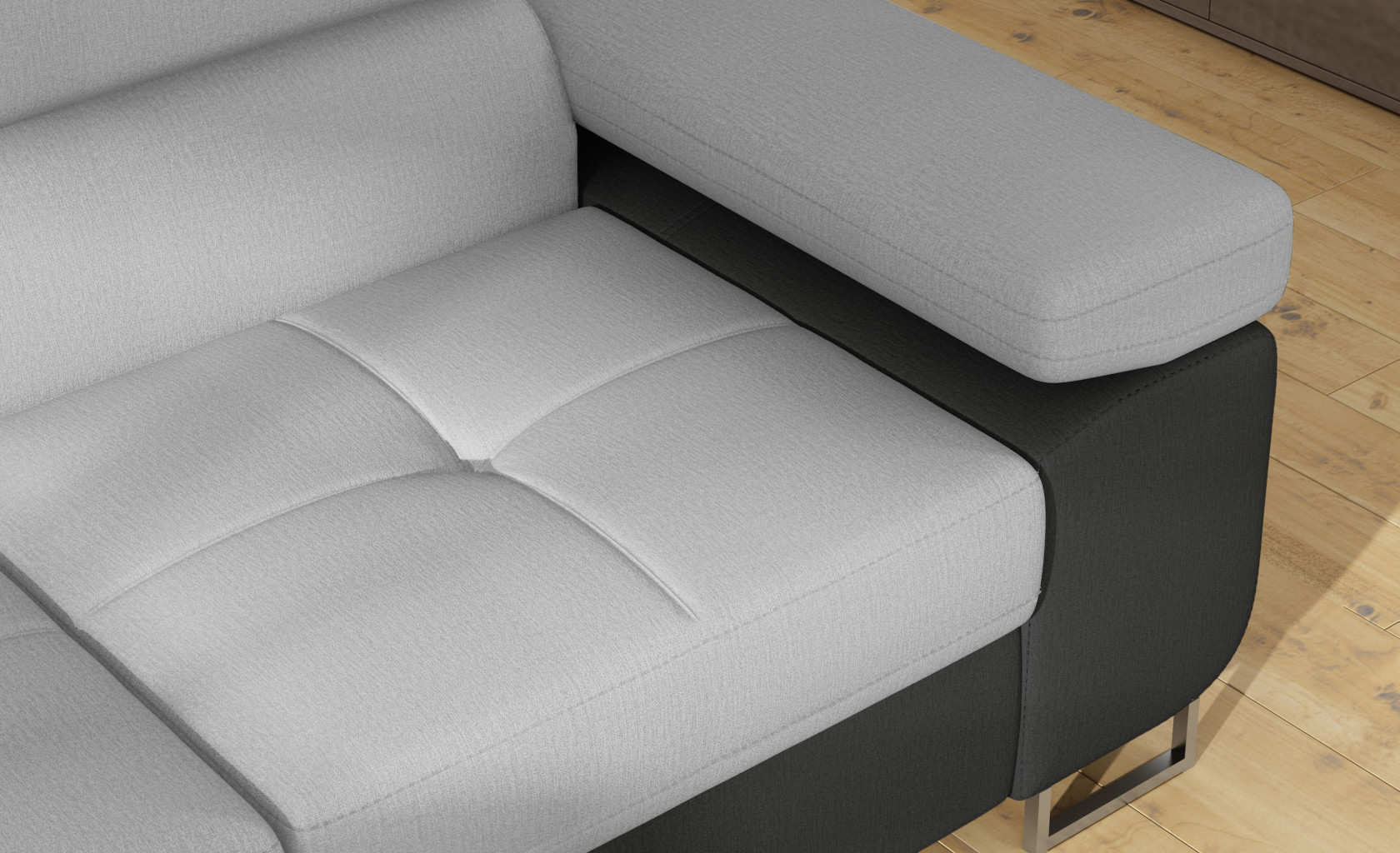 Dotaz na produkt Na splátky ještě dnesAnton je multifunkční a prostorná rohová rozkládací pohovka vyrobená v moderním stylu. Je synonymem pro vysokou kvalitu a maximální pohodlí, a to díky širokému sedáku s hloubkou 60 cm a extrémně elastické pěně T30. Anton s rozměry 275 x 202 x 90 cm a velkou spací plochou 125 x 193 cm je zárukou dobrého nočního spánku. Nábytek má také velký úložný prostor na ložní prádlo. Maximální pocit pohodlí je ovlivněn mimo jiné vysokými, nastavitelnými opěrkami hlavy, 28 centimetrů širokými područkami a 9 cm vysokými kovovými nohami. Pokud vás zajímá, co dalšího Anton nabízí, doporučujeme vám vybrat si naši rohovou rozkládací pohovku. Látky: Monolith 84, Monolith 97