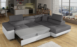 Dotaz na produkt Na splátky ještě dnesAnton je multifunkční a prostorná rohová rozkládací pohovka vyrobená v moderním stylu. Je synonymem pro vysokou kvalitu a maximální pohodlí, a to díky širokému sedáku s hloubkou 60 cm a extrémně elastické pěně T30. Anton s rozměry 275 x 202 x 90 cm a velkou spací plochou 125 x 193 cm je zárukou dobrého nočního spánku. Nábytek má také velký úložný prostor na ložní prádlo. Maximální pocit pohodlí je ovlivněn mimo jiné vysokými, nastavitelnými opěrkami hlavy, 28 centimetrů širokými područkami a 9 cm vysokými kovovými nohami. Pokud vás zajímá, co dalšího Anton nabízí, doporučujeme vám vybrat si naši rohovou rozkládací pohovku. Látky: Sawana 21, Soft 17