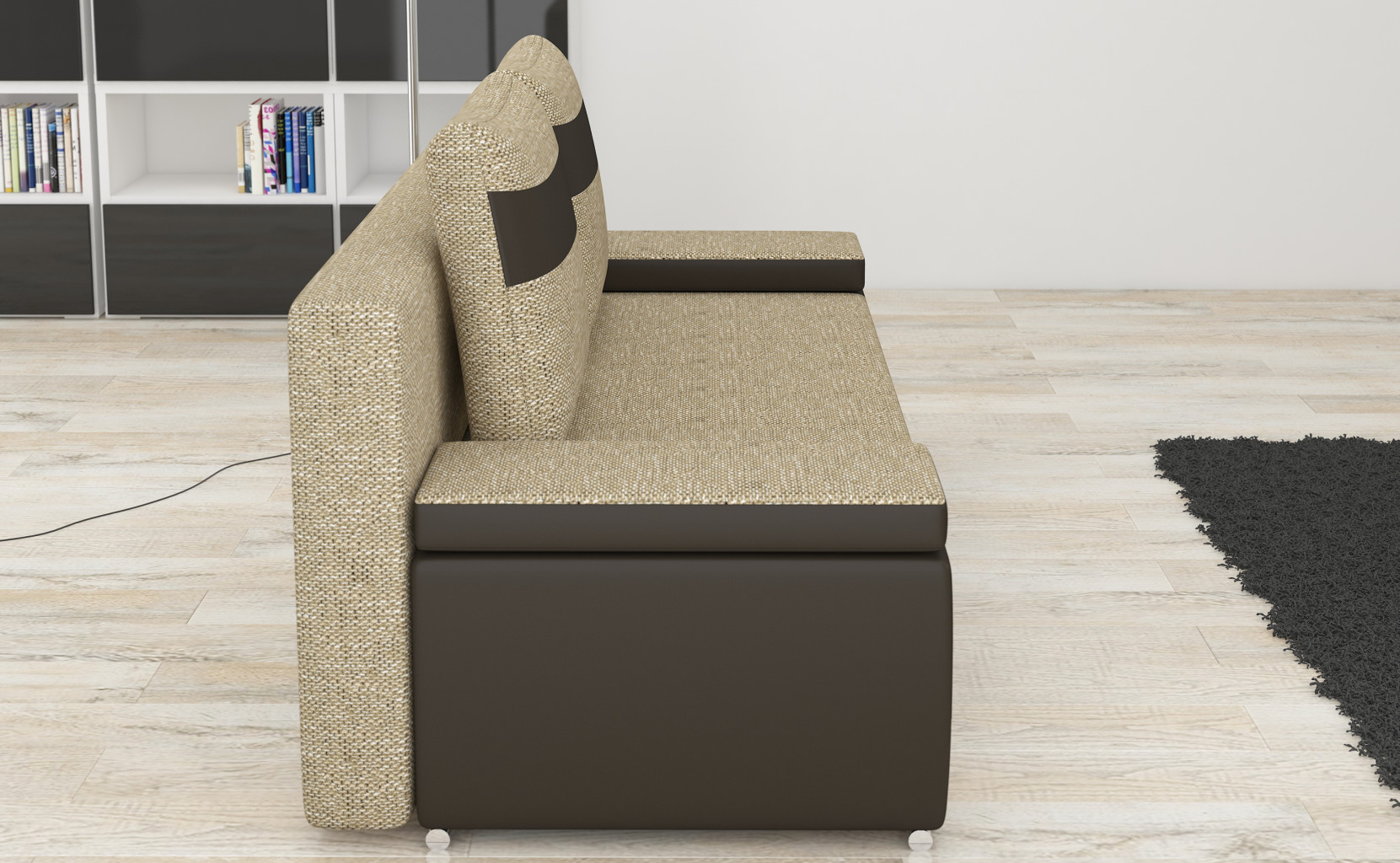 Dotaz na produkt Na splátky ještě dnesArea je moderní, funkční a originální pohovka pro milovníky originálních řešení. Geometrický tvar, stylové dekorace na čalounění a polštářích, originální vložka v jiném odstínu čalounění umístěná ve spodní části pohovky, na bocích a polštářích - to vše dodává pohovce Area mimořádně originální šmrnc. Za zmínku stojí také široké područky, správně profilované opěradlo a další prostorné polštáře, které zvyšují pohodlí při používání. Area je kus nábytku o rozměrech 200 x 92 x 90 cm - pro odpočinek během dne, a díky funkci spaní - postel o rozměrech 200 x 140 cm s dodatečně prostorným lůžkem na ložní prádlo. Celek je podepřen otevíracím mechanismem DL. Díky použití bonelu a pěny T25 je sedák pohovky mimořádně flexibilní a měkký. Jednoduchý tvar, elegantní konstrukce a moderní design - to je pohovka Area. Jsme pro to! Látky: Berlin 03, Soft 66
