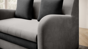 Dotaz na produkt Na splátky ještě dnesPohovka Ario s funkcí spaní je odpovědí na potřeby moderních bytů. Její čalounění dostupné v mnoha barvách a látkách a minimalistický design umožňují, aby se celek dokonale hodil do modernistického uspořádání. Kompaktní rozměry zajistí, že konstrukce nezabere příliš mnoho místa – lze ji umístit do pokoje pro teenagery, pokoje pro hosty nebo menšího obývacího pokoje. Malé plastové nožičky o tloušťce 1,5 cm chrání podlahu před poškrábáním. Zajímavou volbou je použití pěny T28 a pěny T25. Tato kombinace dodává konstrukci značnou měkkost a pružnost, díky čemuž se nedeformuje. Ario nabízí snadno použitelnou funkci spaní (plocha 111 cm x 196 cm) a prostorný úložný prostor na ložní prádlo o rozměrech 85 cm x 61 cm x 13 cm. Proto je ideální pro občasné i každodenní spaní.Látky: Nube 3, Nube 6