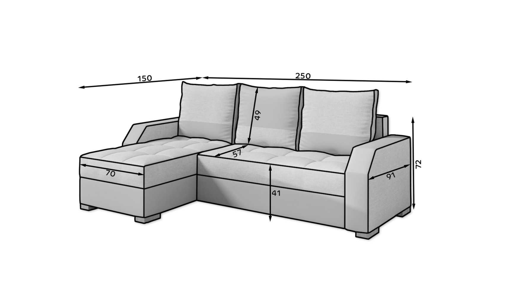 Dotaz na produkt Na splátky ještě dnesAris je funkční a stylová rohová rozkládací pohovka v moderně-klasickém stylu, protože klasický tvar je doplněn moderní povrchovou úpravou jednotlivých komponentů. Prostorná rozkládací pohovka o rozměrech 250 x 150 x 72 cm se bude perfektně hodit jako kus nábytku pro denní relaxaci, ale lze ji využít i jako místo na spaní. Tento model je vybaven dvěma prostornými přihrádkami na ložní prádlo, z nichž jedna se nachází v podnožce a druhá je k dispozici po rozložení rohové části. Výjimečné pohodlí zaručuje bonnell a pěna T3040, ze kterých je vyroben měkký a elastický sedák. Dalším charakteristickým prvkem našeho nábytku je stylové dvoubarevné čalounění a velká spací plocha o rozměrech 195 x 125 cm. Garantujeme, že Aris splní všechny vaše požadavky. Určitě se vyplatí mít doma takový kus nábytku. Látky: Berlin 01, Soft 29