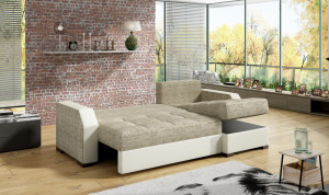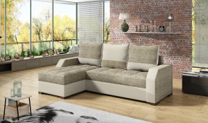 Dotaz na produkt Na splátky ještě dnesAris je funkční a stylová rohová rozkládací pohovka v moderně-klasickém stylu, protože klasický tvar je doplněn moderní povrchovou úpravou jednotlivých komponentů. Prostorná rozkládací pohovka o rozměrech 250 x 150 x 72 cm se bude perfektně hodit jako kus nábytku pro denní relaxaci, ale lze ji využít i jako místo na spaní. Tento model je vybaven dvěma prostornými přihrádkami na ložní prádlo, z nichž jedna se nachází v podnožce a druhá je k dispozici po rozložení rohové části. Výjimečné pohodlí zaručuje bonnell a pěna T3040, ze kterých je vyroben měkký a elastický sedák. Dalším charakteristickým prvkem našeho nábytku je stylové dvoubarevné čalounění a velká spací plocha o rozměrech 195 x 125 cm. Garantujeme, že Aris splní všechny vaše požadavky. Určitě se vyplatí mít doma takový kus nábytku. Látky: Berlin 03, Soft 33