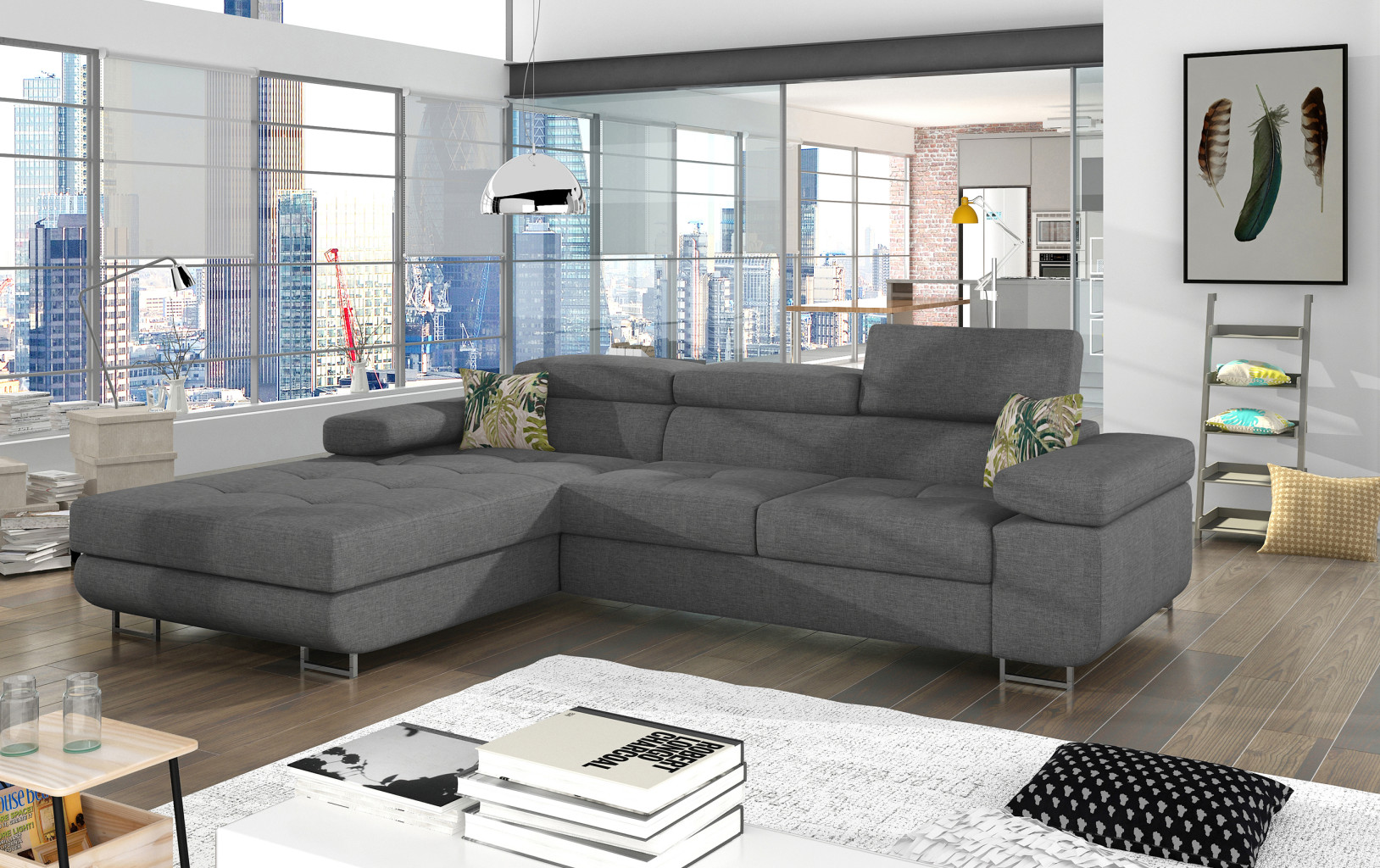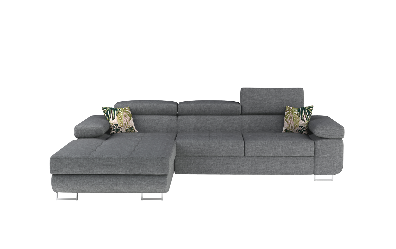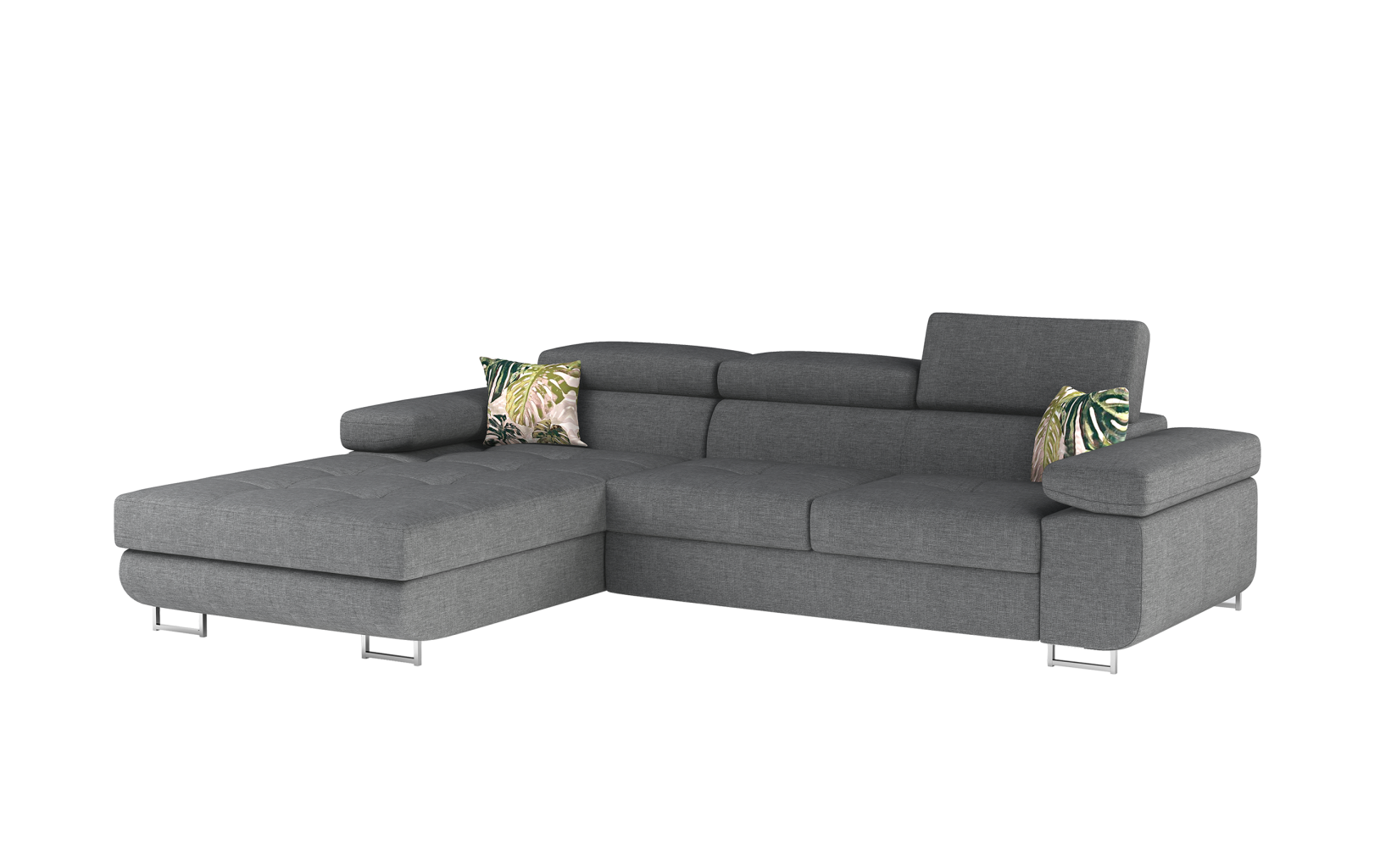 Dotaz na produkt Na splátky ještě dnesArmando je stylová, funkční a především elegantní rohová rozkládací pohovka pro náročné znalce pohodlí. Vysoký komfort odpočinku je umocněn širokými područkami, dobře tvarovaným opěradlem a nastavitelnými, vysokými opěrkami hlavy. Sedák prostorné rohové jednotky o rozměrech 280 x 205 x 90 cm je vyroben z pěny T30, která je zodpovědná za maximální pohodlí a pružnost. Rohová jednotka ve tvaru L je vybavena funkcí spaní o ploše 125 x 198 cm. Kromě toho má také velký úložný prostor na ložní prádlo. Díky jemným prošívaným detailům, elegantním stehům a vysokým chromovaným nohám je rohová jednotka zachována v moderním stylu povrchové úpravy. Armando je k dispozici v mnoha barvách. Stojí za to mít doma takový kus nábytku.Látky: Potah 83, Jungle 37
