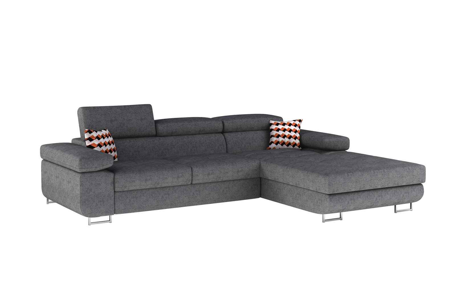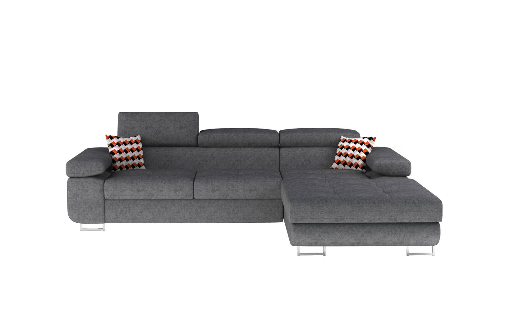 Dotaz na produkt Na splátky ještě dnesArmando je stylová, funkční a především elegantní rohová rozkládací pohovka pro náročné znalce pohodlí. Vysoký komfort odpočinku je umocněn širokými područkami, dobře tvarovaným opěradlem a nastavitelnými, vysokými opěrkami hlavy. Sedák prostorné rohové jednotky o rozměrech 280 x 205 x 90 cm je vyroben z pěny T30, která je zodpovědná za maximální pohodlí a pružnost. Rohová jednotka ve tvaru L je vybavena funkcí spaní o ploše 125 x 198 cm. Kromě toho má také velký úložný prostor na ložní prádlo. Díky jemným prošívaným detailům, elegantním stehům a vysokým chromovaným nohám je rohová jednotka zachována v moderním stylu povrchové úpravy. Armando je k dispozici v mnoha barvách. Stojí za to mít doma takový kus nábytku.Látky: Gusto 88, Zigzag 60