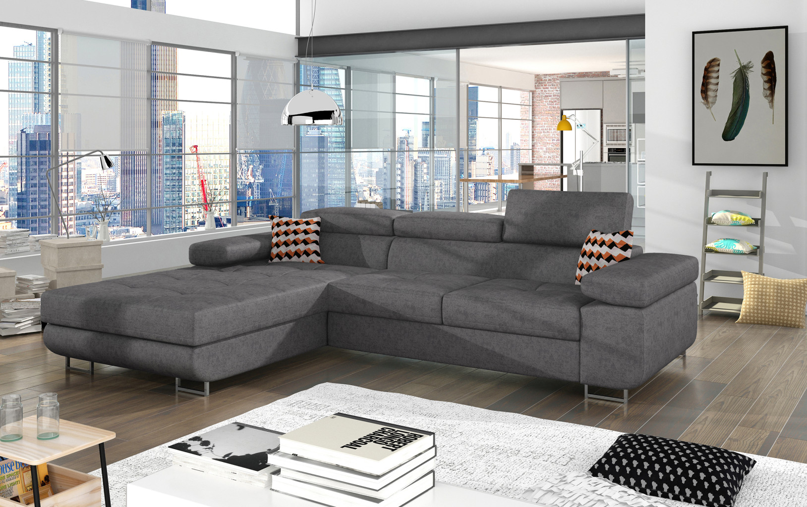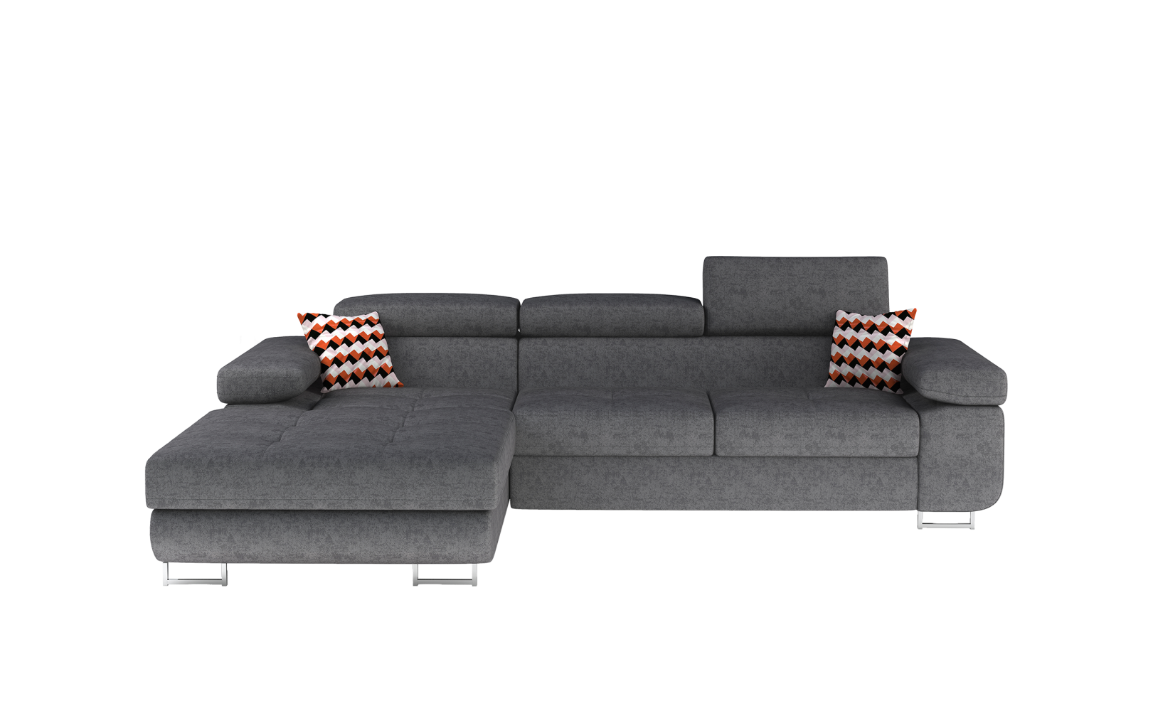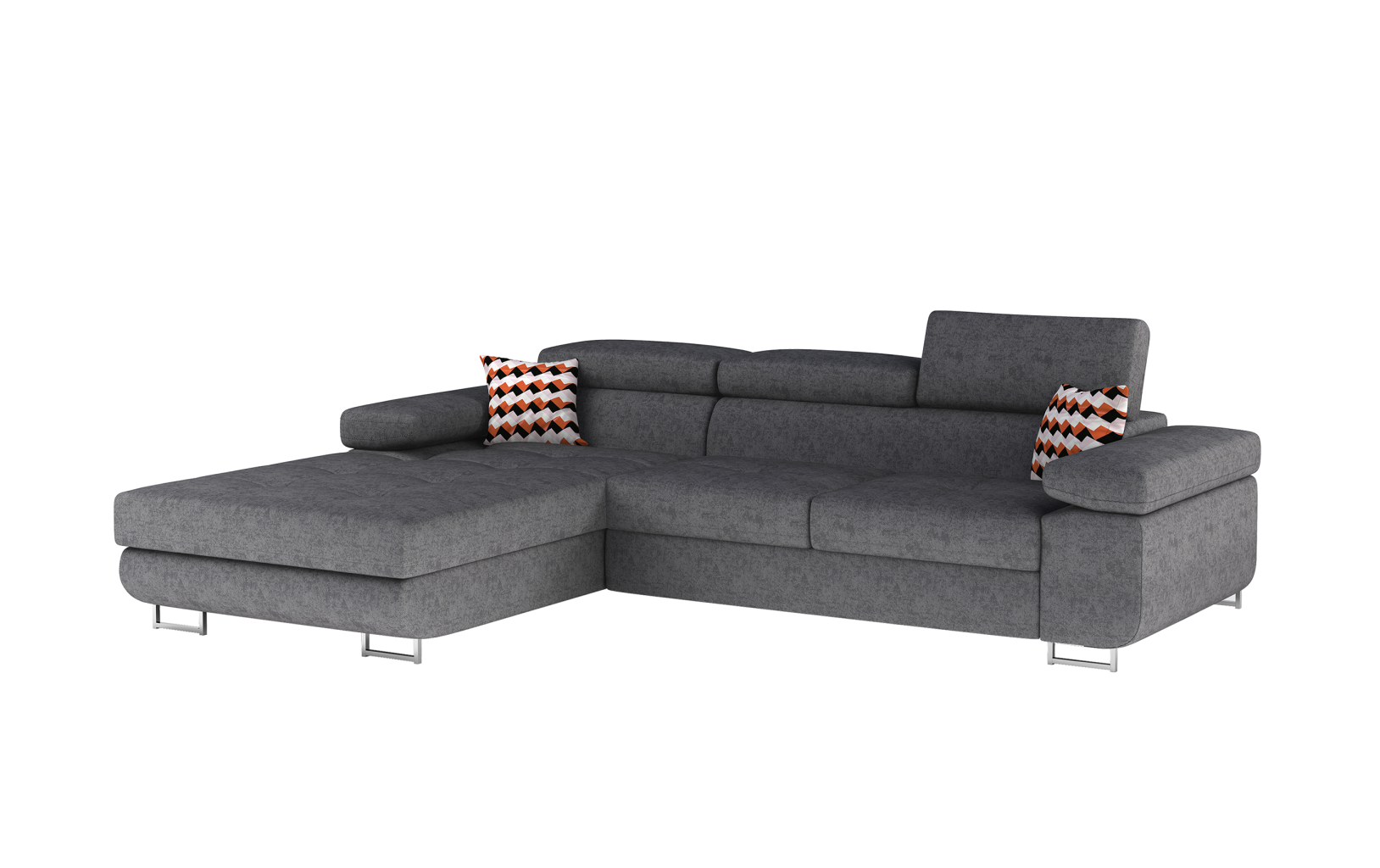 Dotaz na produkt Na splátky ještě dnesArmando je stylová, funkční a především elegantní rohová rozkládací pohovka pro náročné znalce pohodlí. Vysoký komfort odpočinku je umocněn širokými područkami, dobře tvarovaným opěradlem a nastavitelnými, vysokými opěrkami hlavy. Sedák prostorné rohové jednotky o rozměrech 280 x 205 x 90 cm je vyroben z pěny T30, která je zodpovědná za maximální pohodlí a pružnost. Rohová jednotka ve tvaru L je vybavena funkcí spaní o ploše 125 x 198 cm. Kromě toho má také velký úložný prostor na ložní prádlo. Díky jemným prošívaným detailům, elegantním stehům a vysokým chromovaným nohám je rohová jednotka zachována v moderním stylu povrchové úpravy. Armando je k dispozici v mnoha barvách. Stojí za to mít doma takový kus nábytku.Látky: Gusto 88, Zigzag 60