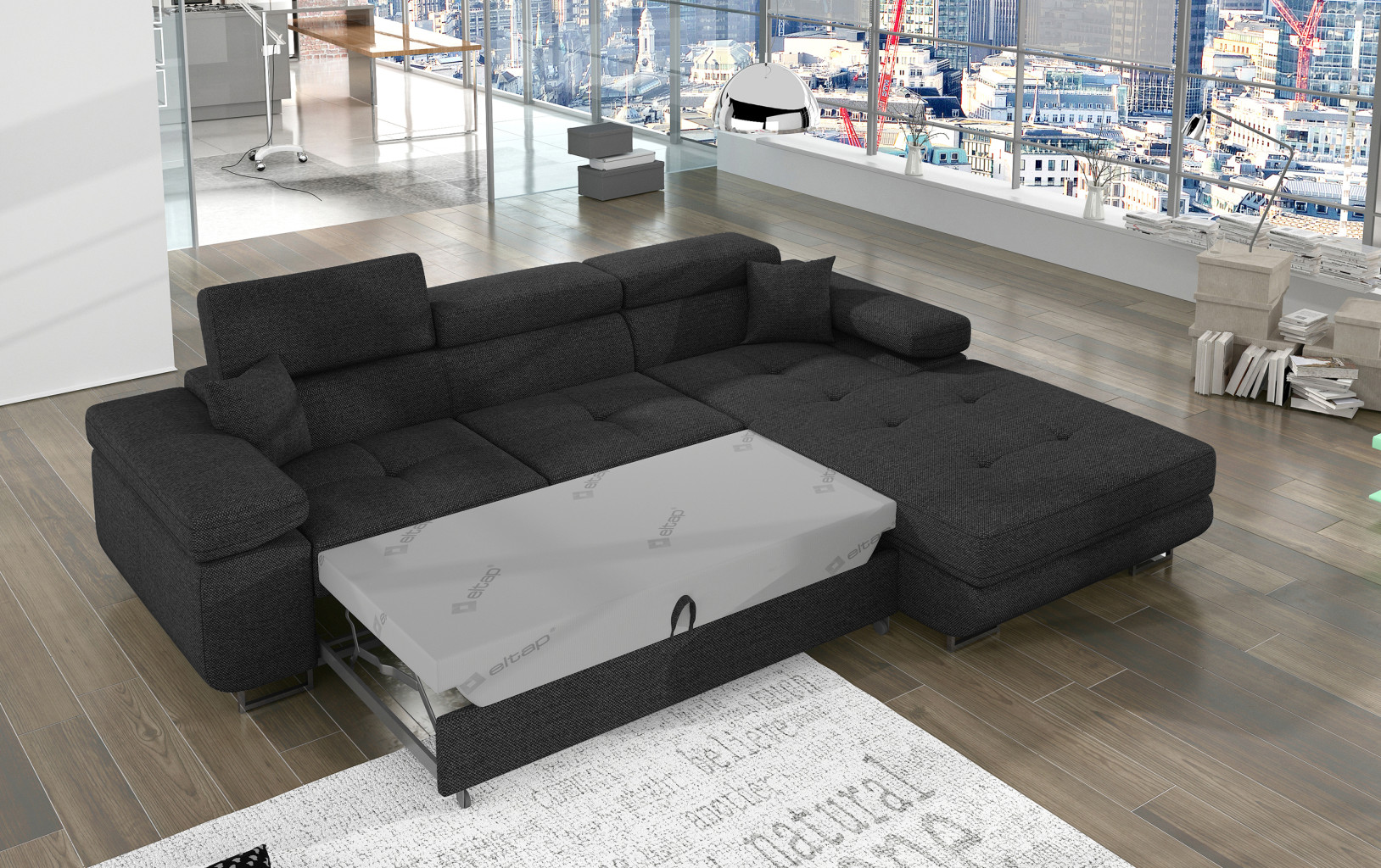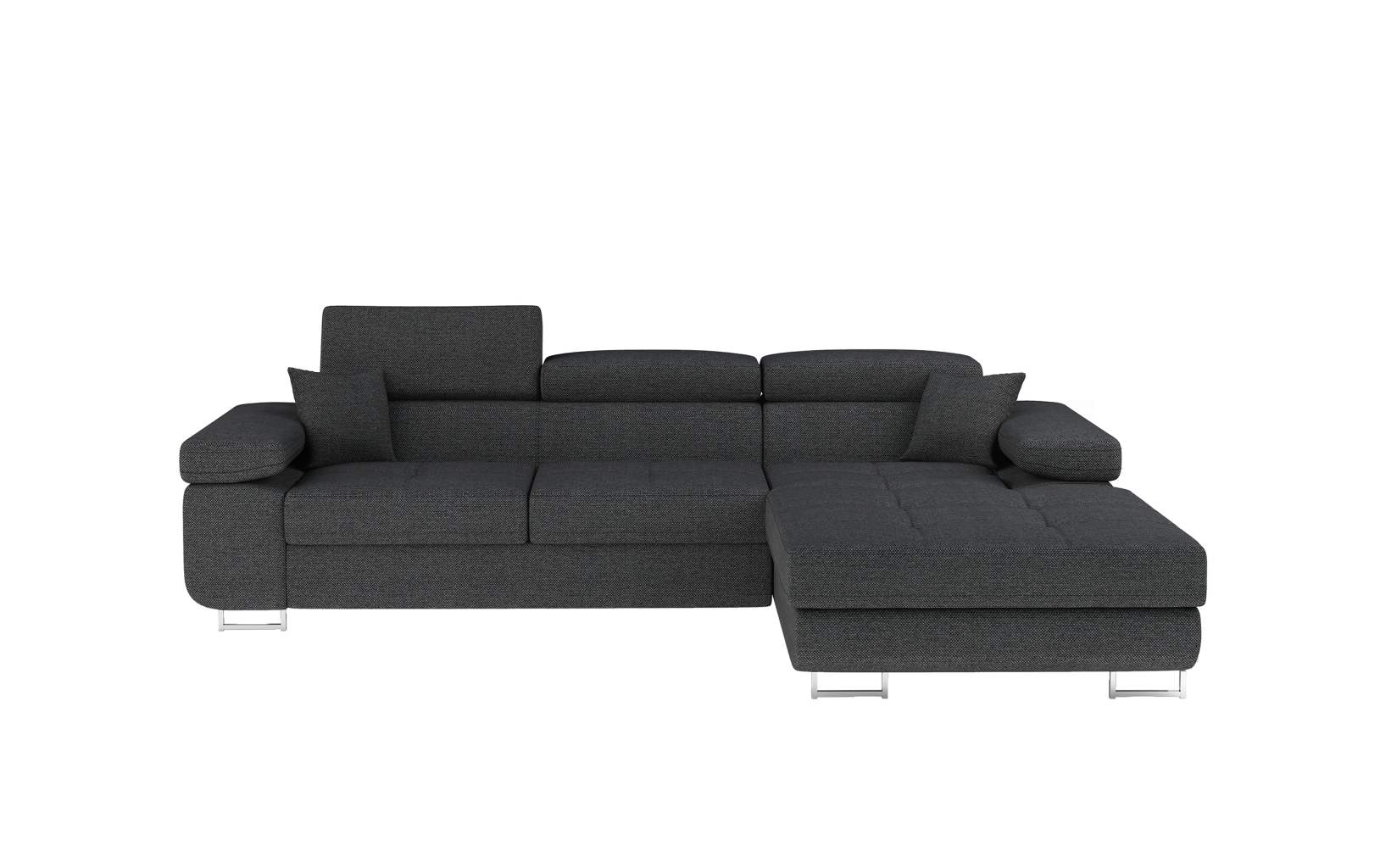 Dotaz na produkt Na splátky ještě dnesArmando je stylová, funkční a především elegantní rohová rozkládací pohovka pro náročné znalce pohodlí. Vysoký komfort odpočinku je umocněn širokými područkami, dobře tvarovaným opěradlem a nastavitelnými, vysokými opěrkami hlavy. Sedák prostorné rohové jednotky o rozměrech 280 x 205 x 90 cm je vyroben z pěny T30, která je zodpovědná za maximální pohodlí a pružnost. Rohová jednotka ve tvaru L je vybavena funkcí spaní o ploše 125 x 198 cm. Kromě toho má také velký úložný prostor na ložní prádlo. Díky jemným prošívaným detailům, elegantním stehům a vysokým chromovaným nohám je rohová jednotka zachována v moderním stylu povrchové úpravy. Armando je k dispozici v mnoha barvách. Stojí za to mít doma takový kus nábytku.Látky: Inari 96