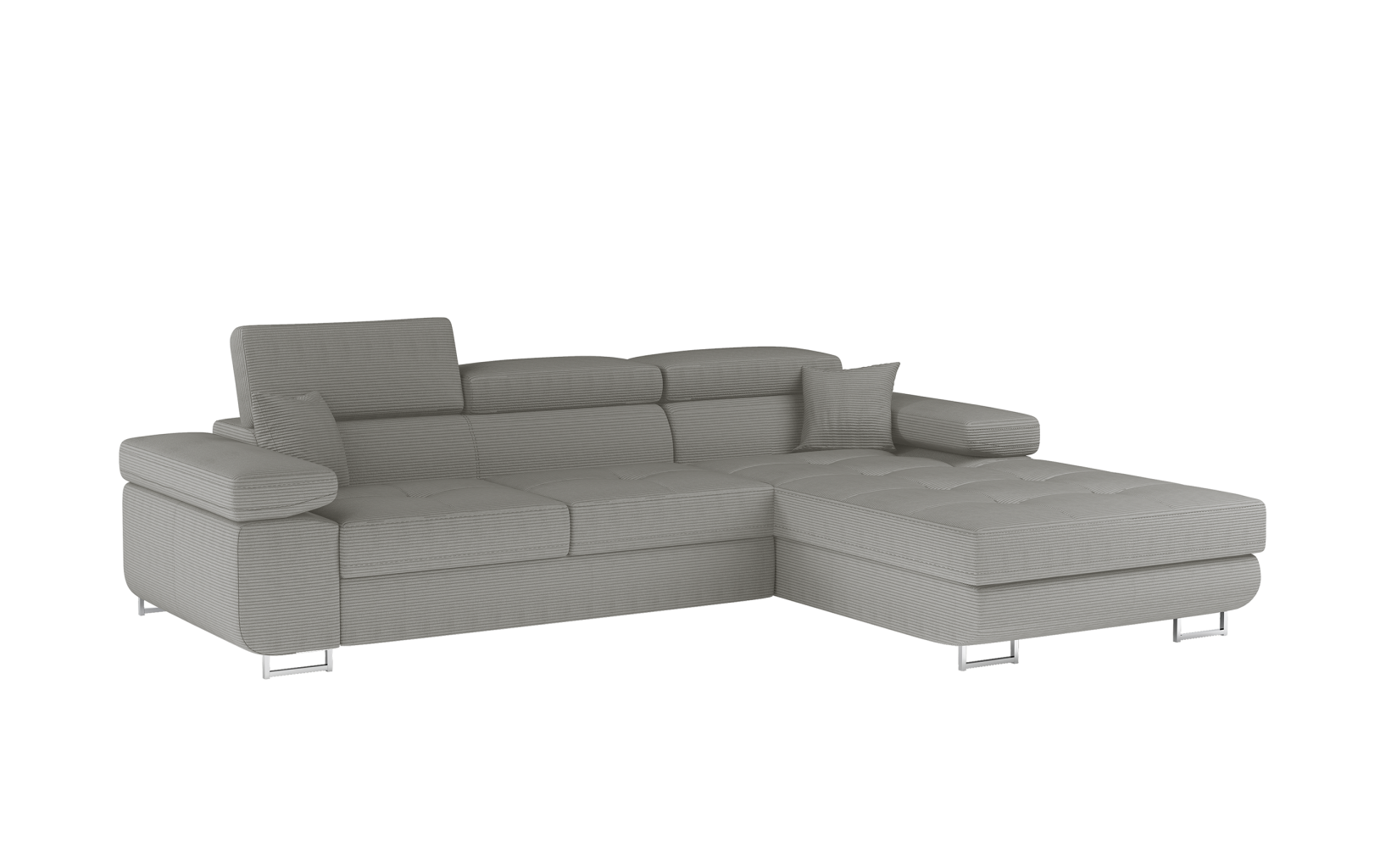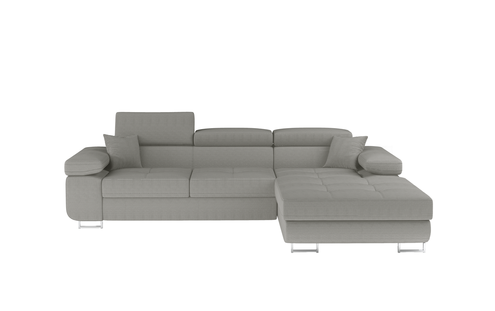 Dotaz na produkt Na splátky ještě dnesArmando je stylová, funkční a především elegantní rohová rozkládací pohovka pro náročné znalce pohodlí. Vysoký komfort odpočinku je umocněn širokými područkami, dobře tvarovaným opěradlem a nastavitelnými, vysokými opěrkami hlavy. Sedák prostorné rohové jednotky o rozměrech 280 x 205 x 90 cm je vyroben z pěny T30, která je zodpovědná za maximální pohodlí a pružnost. Rohová jednotka ve tvaru L je vybavena funkcí spaní o ploše 125 x 198 cm. Kromě toho má také velký úložný prostor na ložní prádlo. Díky jemným prošívaným detailům, elegantním stehům a vysokým chromovaným nohám je rohová jednotka zachována v moderním stylu povrchové úpravy. Armando je k dispozici v mnoha barvách. Stojí za to mít doma takový kus nábytku.Látky: Jarell 03