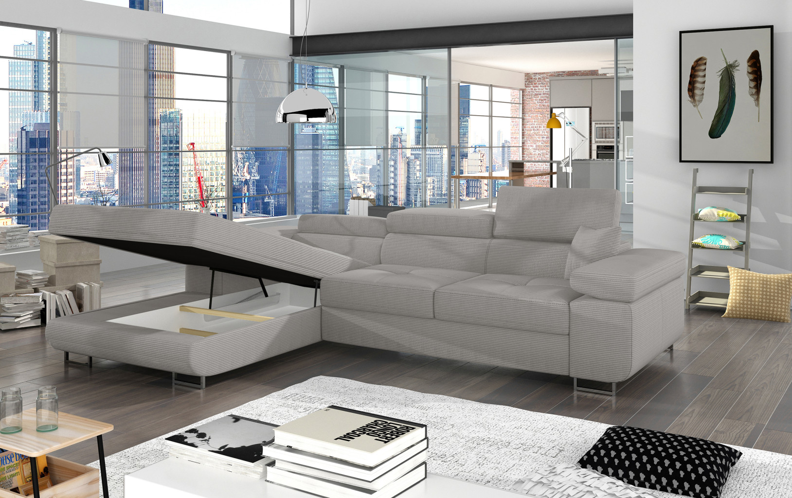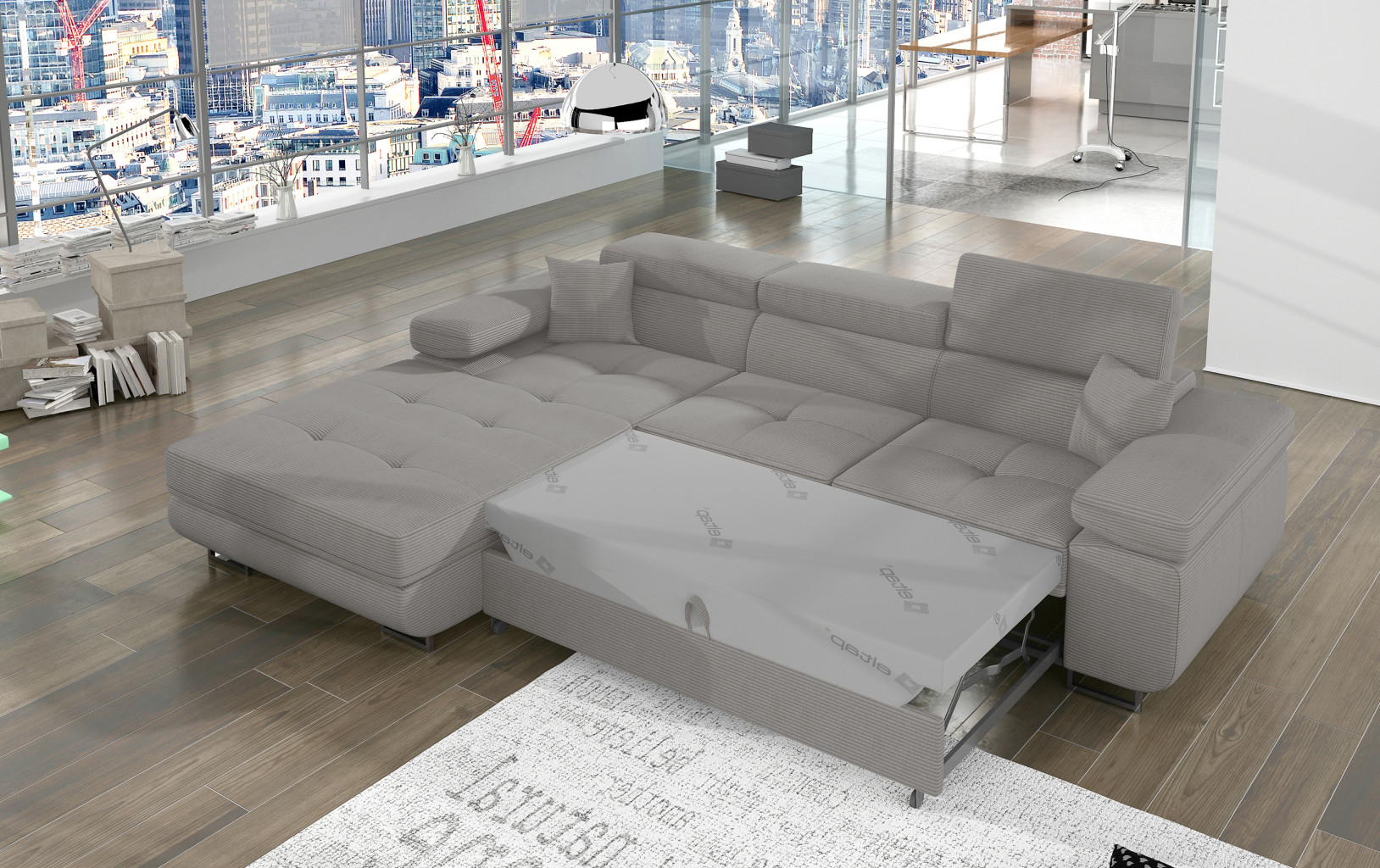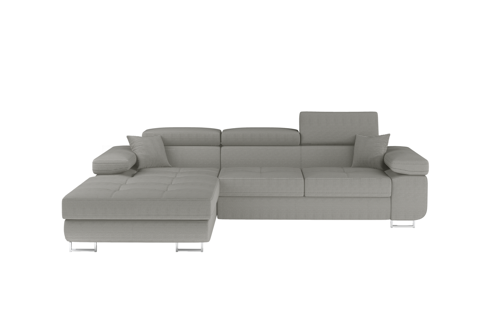 Dotaz na produkt Na splátky ještě dnesArmando je stylová, funkční a především elegantní rohová rozkládací pohovka pro náročné znalce pohodlí. Vysoký komfort odpočinku je umocněn širokými područkami, dobře tvarovaným opěradlem a nastavitelnými, vysokými opěrkami hlavy. Sedák prostorné rohové jednotky o rozměrech 280 x 205 x 90 cm je vyroben z pěny T30, která je zodpovědná za maximální pohodlí a pružnost. Rohová jednotka ve tvaru L je vybavena funkcí spaní o ploše 125 x 198 cm. Kromě toho má také velký úložný prostor na ložní prádlo. Díky jemným prošívaným detailům, elegantním stehům a vysokým chromovaným nohám je rohová jednotka zachována v moderním stylu povrchové úpravy. Armando je k dispozici v mnoha barvách. Stojí za to mít doma takový kus nábytku.Látky: Jarell 03