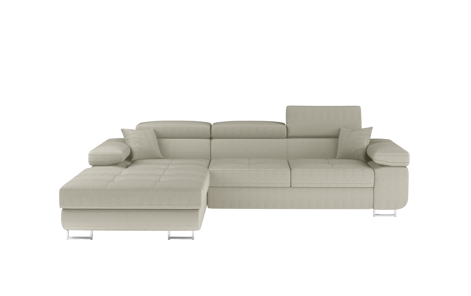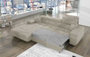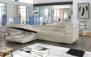 Dotaz na produkt Na splátky ještě dnesArmando je stylová, funkční a především elegantní rohová rozkládací pohovka pro náročné znalce pohodlí. Vysoký komfort odpočinku je umocněn širokými područkami, dobře tvarovaným opěradlem a nastavitelnými, vysokými opěrkami hlavy. Sedák prostorné rohové jednotky o rozměrech 280 x 205 x 90 cm je vyroben z pěny T30, která je zodpovědná za maximální pohodlí a pružnost. Rohová jednotka ve tvaru L je vybavena funkcí spaní o ploše 125 x 198 cm. Kromě toho má také velký úložný prostor na ložní prádlo. Díky jemným prošívaným detailům, elegantním stehům a vysokým chromovaným nohám je rohová jednotka zachována v moderním stylu povrchové úpravy. Armando je k dispozici v mnoha barvách. Stojí za to mít doma takový kus nábytku.Látky: Jarell 18
