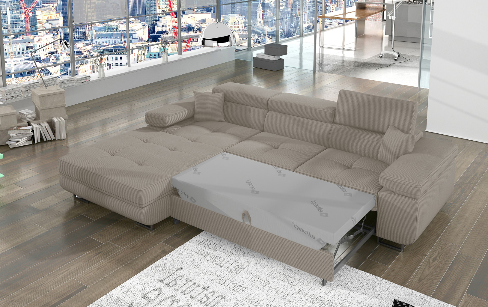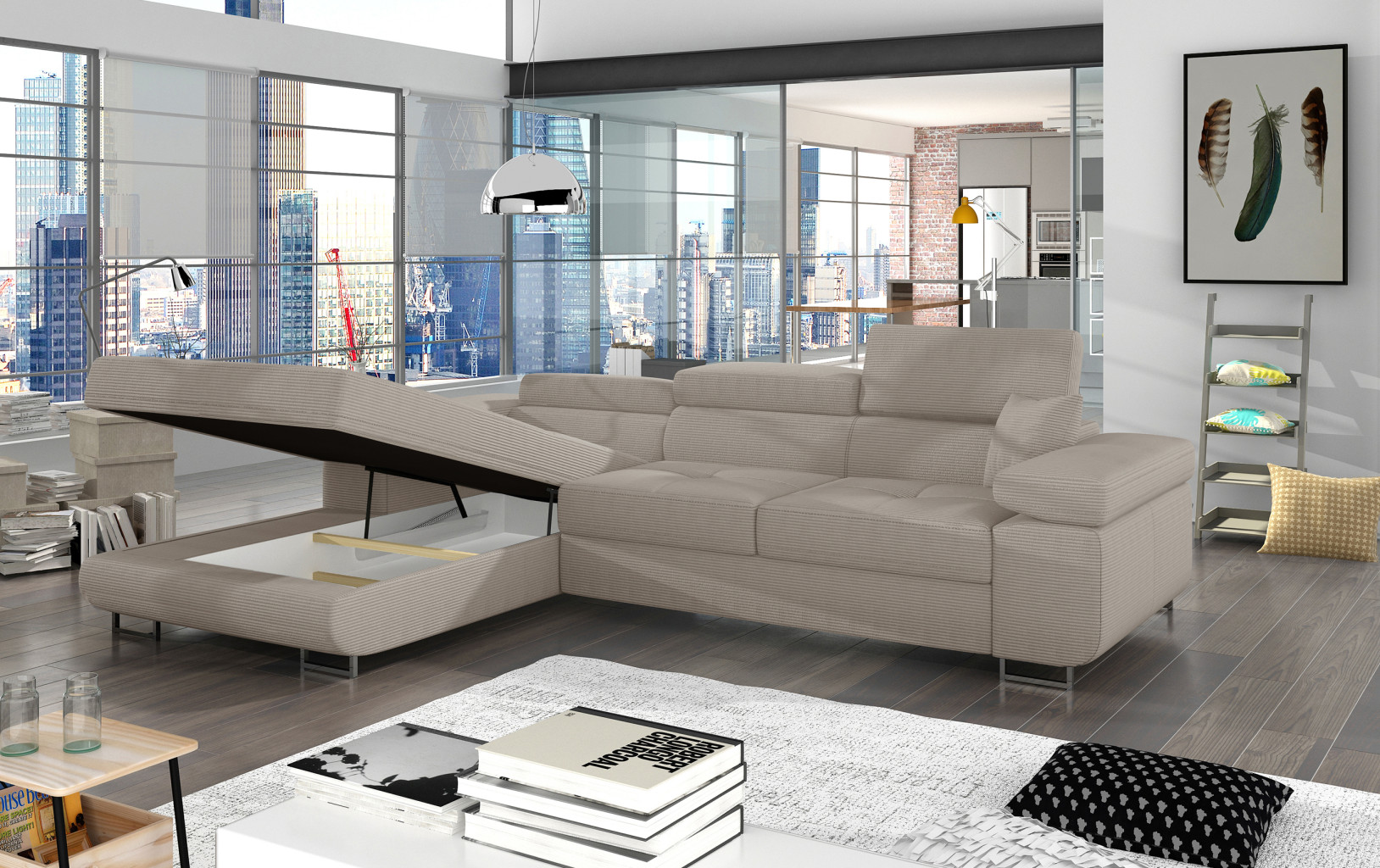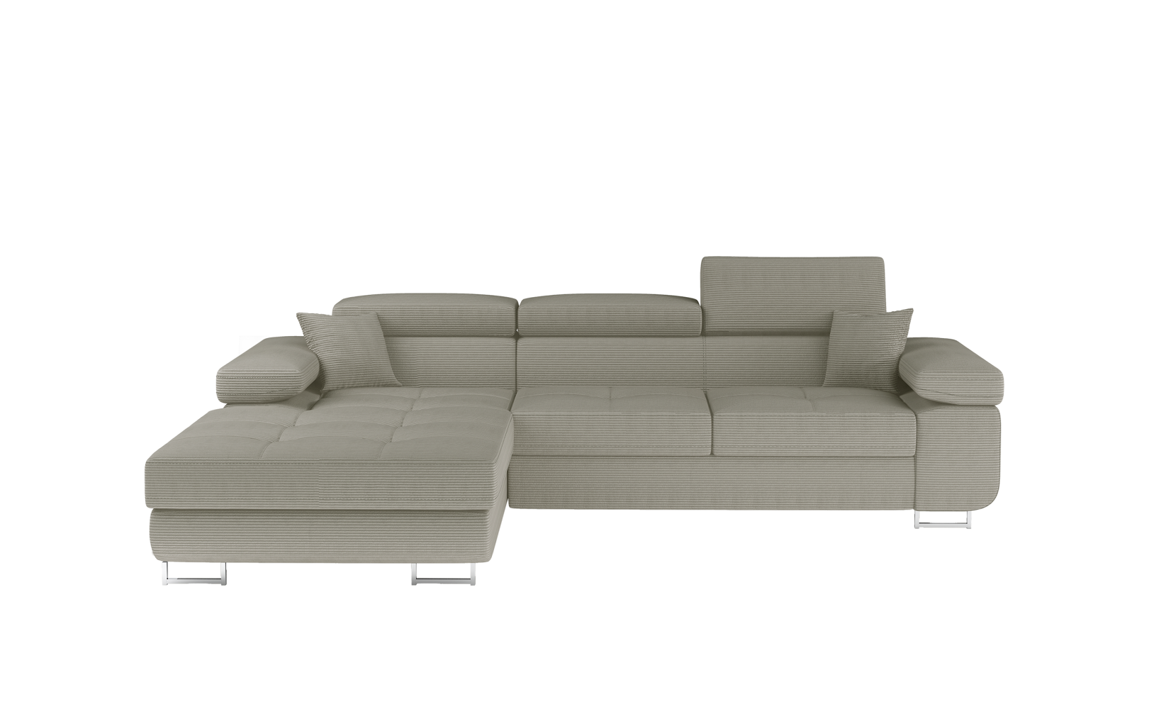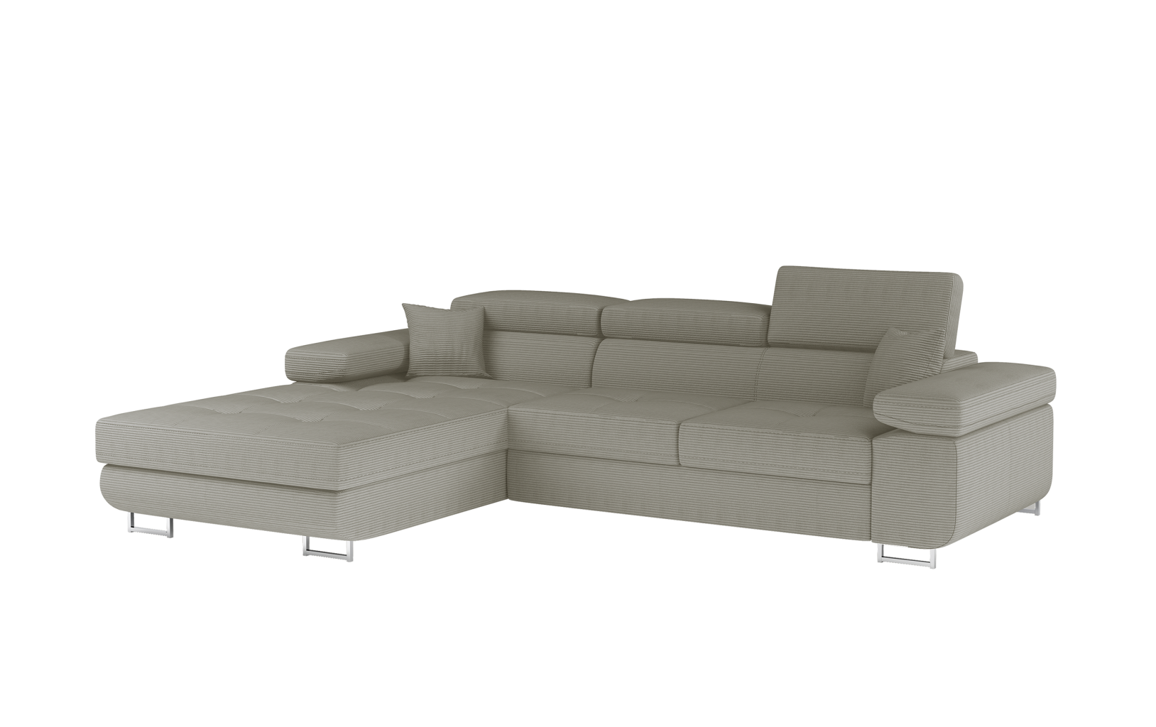 Dotaz na produkt Na splátky ještě dnesArmando je stylová, funkční a především elegantní rohová rozkládací pohovka pro náročné znalce pohodlí. Vysoký komfort odpočinku je umocněn širokými područkami, dobře tvarovaným opěradlem a nastavitelnými, vysokými opěrkami hlavy. Sedák prostorné rohové jednotky o rozměrech 280 x 205 x 90 cm je vyroben z pěny T30, která je zodpovědná za maximální pohodlí a pružnost. Rohová jednotka ve tvaru L je vybavena funkcí spaní o ploše 125 x 198 cm. Kromě toho má také velký úložný prostor na ložní prádlo. Díky jemným prošívaným detailům, elegantním stehům a vysokým chromovaným nohám je rohová jednotka zachována v moderním stylu povrchové úpravy. Armando je k dispozici v mnoha barvách. Stojí za to mít doma takový kus nábytku.Látky: Jarell 20