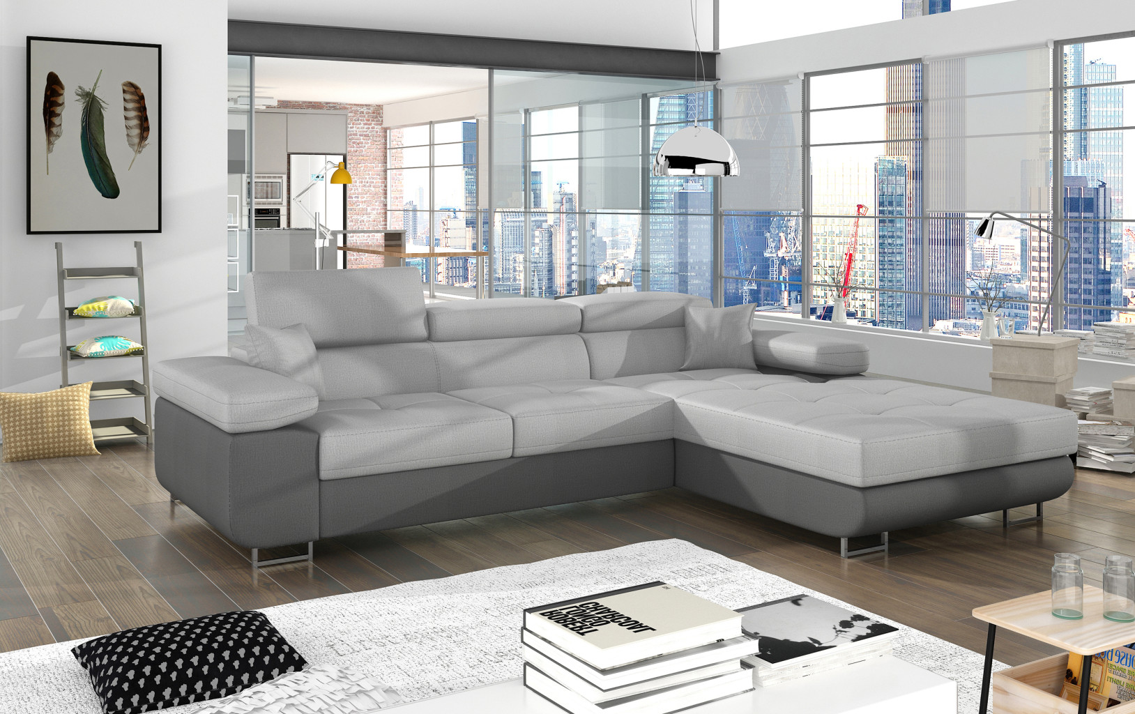 Dotaz na produkt Na splátky ještě dnesArmando je stylová, funkční a především elegantní rohová rozkládací pohovka pro náročné znalce pohodlí. Vysoký komfort odpočinku je umocněn širokými područkami, dobře tvarovaným opěradlem a nastavitelnými, vysokými opěrkami hlavy. Sedák prostorné rohové jednotky o rozměrech 280 x 205 x 90 cm je vyroben z pěny T30, která je zodpovědná za maximální pohodlí a pružnost. Rohová jednotka ve tvaru L je vybavena funkcí spaní o ploše 125 x 198 cm. Kromě toho má také velký úložný prostor na ložní prádlo. Díky jemným prošívaným detailům, elegantním stehům a vysokým chromovaným nohám je rohová jednotka zachována v moderním stylu povrchové úpravy. Armando je k dispozici v mnoha barvách. Stojí za to mít doma takový kus nábytku. Látky: Monolith 84, Monolith 97