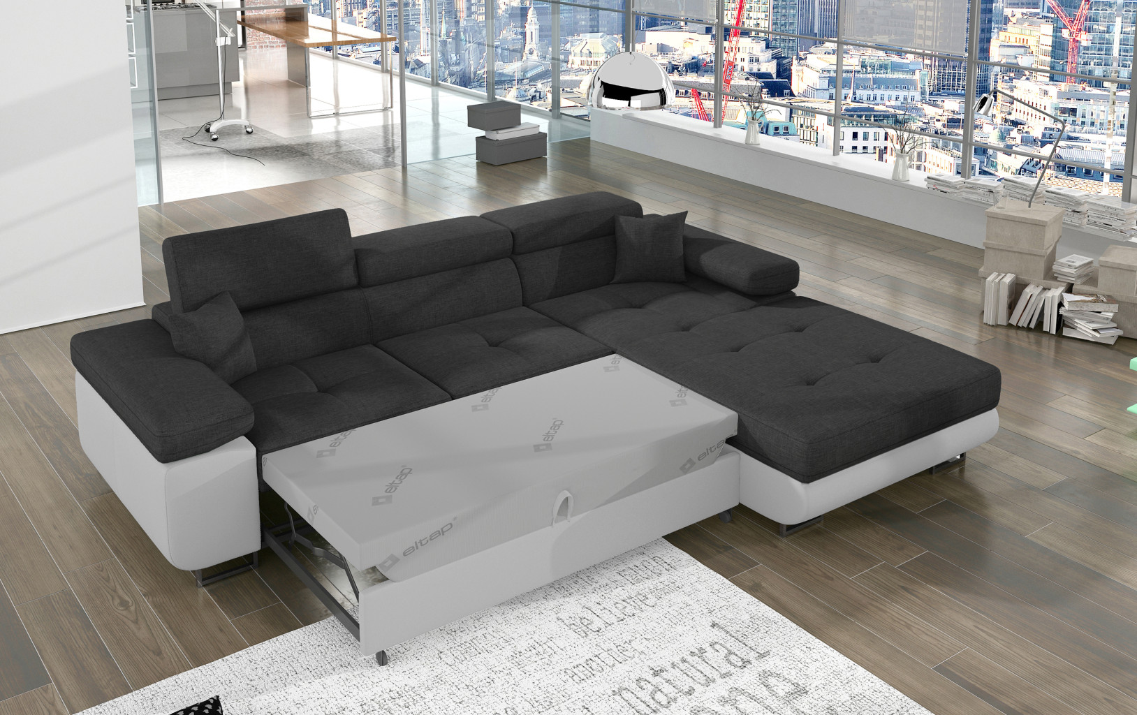 Dotaz na produkt Na splátky ještě dnesArmando je stylová, funkční a především elegantní rohová rozkládací pohovka pro náročné znalce pohodlí. Vysoký komfort odpočinku je umocněn širokými područkami, dobře tvarovaným opěradlem a nastavitelnými, vysokými opěrkami hlavy. Sedák prostorné rohové jednotky o rozměrech 280 x 205 x 90 cm je vyroben z pěny T30, která je zodpovědná za maximální pohodlí a pružnost. Rohová jednotka ve tvaru L je vybavena funkcí spaní o ploše 125 x 198 cm. Kromě toho má také velký úložný prostor na ložní prádlo. Díky jemným prošívaným detailům, elegantním stehům a vysokým chromovaným nohám je rohová jednotka zachována v moderním stylu povrchové úpravy. Armando je k dispozici v mnoha barvách. Stojí za to mít doma takový kus nábytku. Látky: Sawana 05, Soft 17