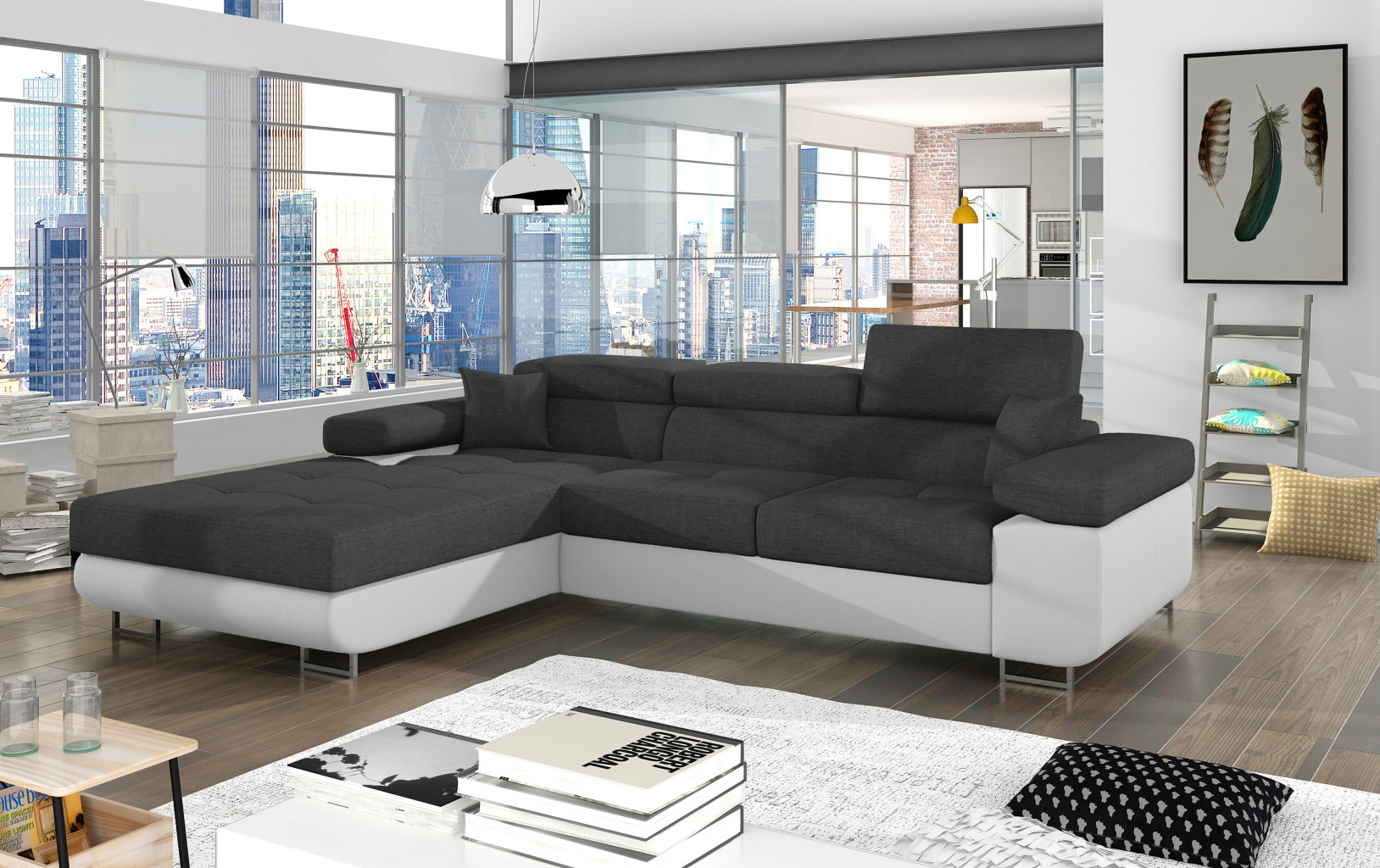 Dotaz na produkt Na splátky ještě dnesArmando je stylová, funkční a především elegantní rohová rozkládací pohovka pro náročné znalce pohodlí. Vysoký komfort odpočinku je umocněn širokými područkami, dobře tvarovaným opěradlem a nastavitelnými, vysokými opěrkami hlavy. Sedák prostorné rohové jednotky o rozměrech 280 x 205 x 90 cm je vyroben z pěny T30, která je zodpovědná za maximální pohodlí a pružnost. Rohová jednotka ve tvaru L je vybavena funkcí spaní o ploše 125 x 198 cm. Kromě toho má také velký úložný prostor na ložní prádlo. Díky jemným prošívaným detailům, elegantním stehům a vysokým chromovaným nohám je rohová jednotka zachována v moderním stylu povrchové úpravy. Armando je k dispozici v mnoha barvách. Vyplatí se mít takový kus nábytku ve svém domě. Látky: Sawana 05, Soft 17