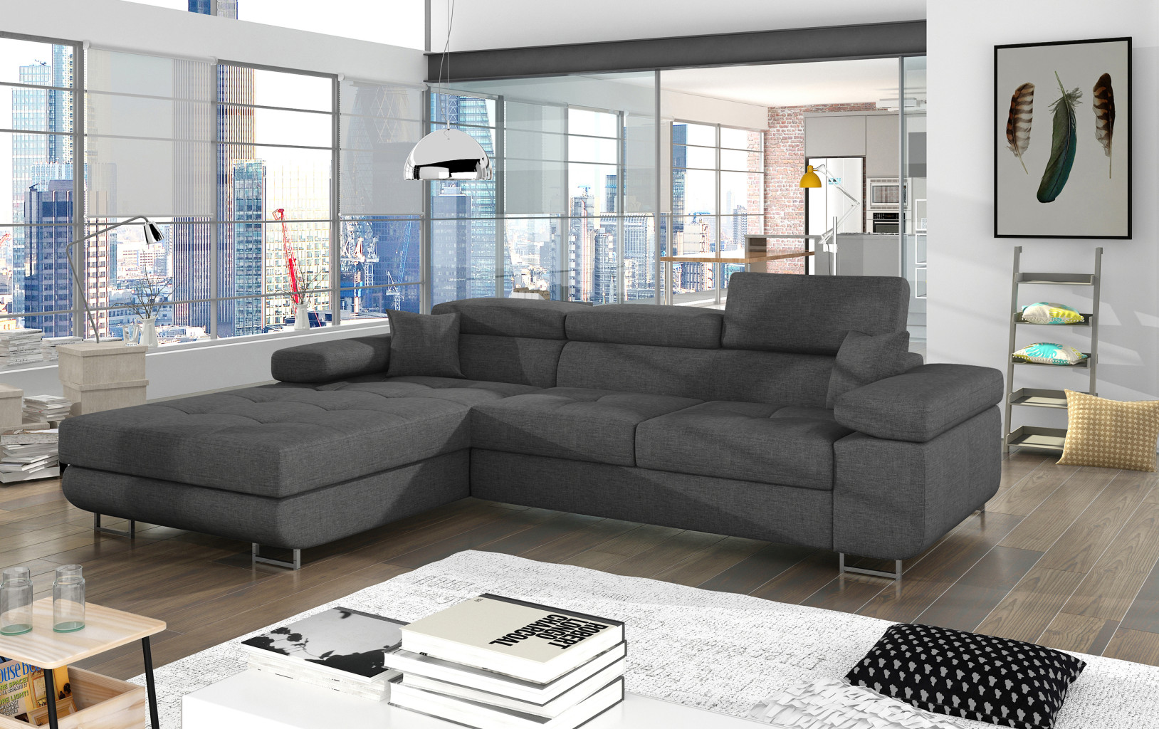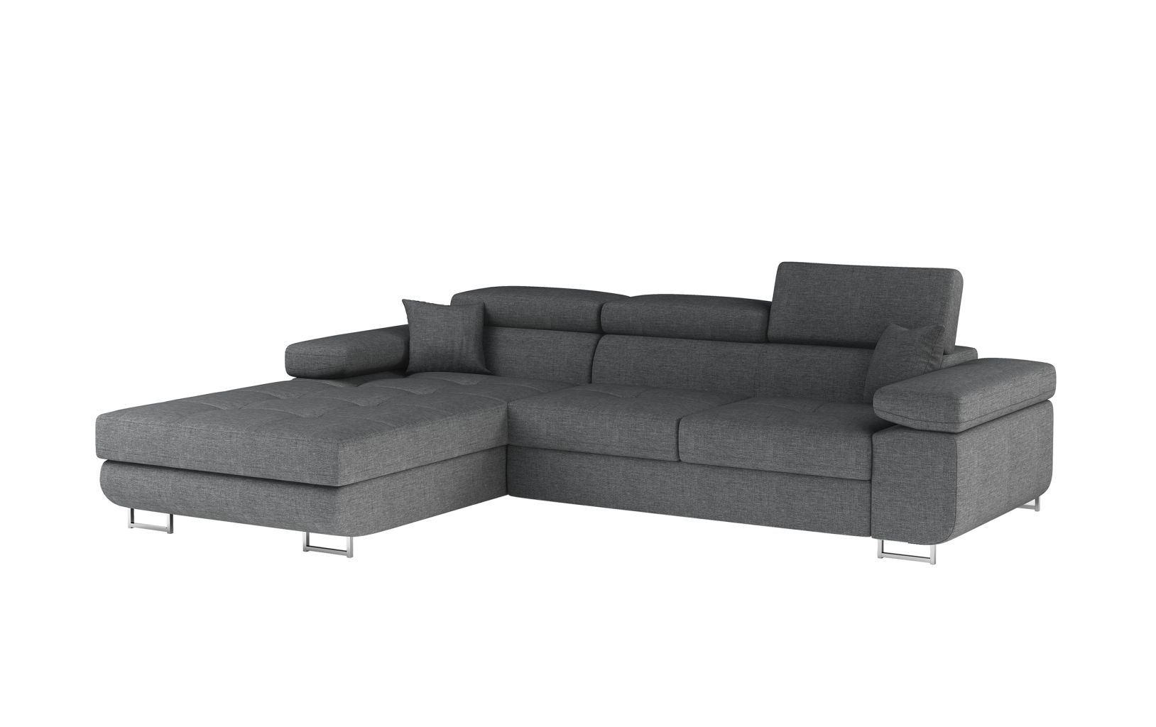 Dotaz na produkt Na splátky ještě dnesArmando je stylová, funkční a především elegantní rohová rozkládací pohovka pro náročné znalce pohodlí. Vysoký komfort odpočinku je umocněn širokými područkami, dobře tvarovaným opěradlem a nastavitelnými, vysokými opěrkami hlavy. Sedák prostorné rohové jednotky o rozměrech 280 x 205 x 90 cm je vyroben z pěny T30, která je zodpovědná za maximální pohodlí a pružnost. Rohová jednotka ve tvaru L je vybavena funkcí spaní o ploše 125 x 198 cm. Kromě toho má také velký úložný prostor na ložní prádlo. Díky jemným prošívaným detailům, elegantním stehům a vysokým chromovaným nohám je rohová jednotka zachována v moderním stylu povrchové úpravy. Armando je k dispozici v mnoha barvách. Stojí za to mít doma takový kus nábytku.Látky: Sawana 21