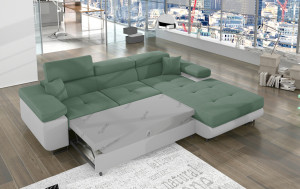 Dotaz na produkt Na splátky ještě dnesArmando je stylová, funkční a především elegantní rohová rozkládací pohovka pro náročné znalce pohodlí. Vysoký komfort odpočinku je umocněn širokými područkami, dobře tvarovaným opěradlem a nastavitelnými, vysokými opěrkami hlavy. Sedák prostorné rohové jednotky o rozměrech 280 x 205 x 90 cm je vyroben z pěny T30, která je zodpovědná za maximální pohodlí a pružnost. Rohová jednotka ve tvaru L je vybavena funkcí spaní o ploše 125 x 198 cm. Kromě toho má také velký úložný prostor na ložní prádlo. Díky jemným prošívaným detailům, elegantním stehům a vysokým chromovaným nohám je rohová jednotka zachována v moderním stylu povrchové úpravy. Armando je k dispozici v mnoha barvách. Stojí za to mít doma takový kus nábytku. Látky: Soro 34, Soft 17
