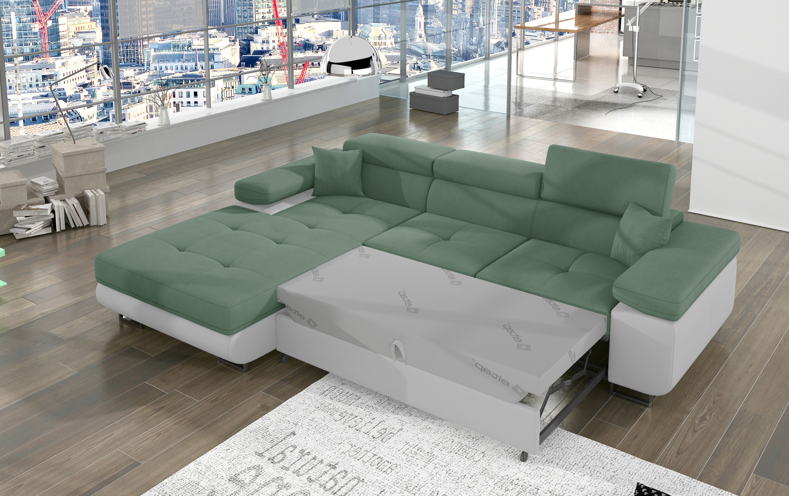 Dotaz na produkt Na splátky ještě dnesArmando je stylová, funkční a především elegantní rohová rozkládací pohovka pro náročné znalce pohodlí. Vysoký komfort odpočinku je umocněn širokými područkami, dobře tvarovaným opěradlem a nastavitelnými, vysokými opěrkami hlavy. Sedák prostorné rohové jednotky o rozměrech 280 x 205 x 90 cm je vyroben z pěny T30, která je zodpovědná za maximální pohodlí a pružnost. Rohová jednotka ve tvaru L je vybavena funkcí spaní o ploše 125 x 198 cm. Kromě toho má také velký úložný prostor na ložní prádlo. Díky jemným prošívaným detailům, elegantním stehům a vysokým chromovaným nohám je rohová jednotka zachována v moderním stylu povrchové úpravy. Armando je k dispozici v mnoha barvách. Vyplatí se mít takový kus nábytku ve svém domě. Látky: Soro 34, Soft 17