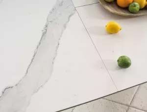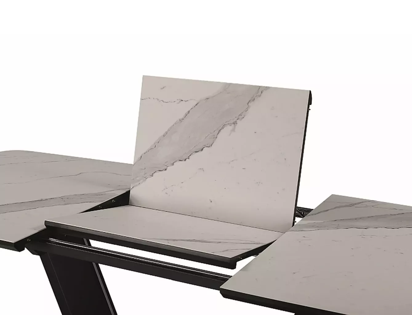 vrchní deska: MDF+italská keramika, matná bílá barva rám: MDF+kov, barva: matná černá+broušená ocel