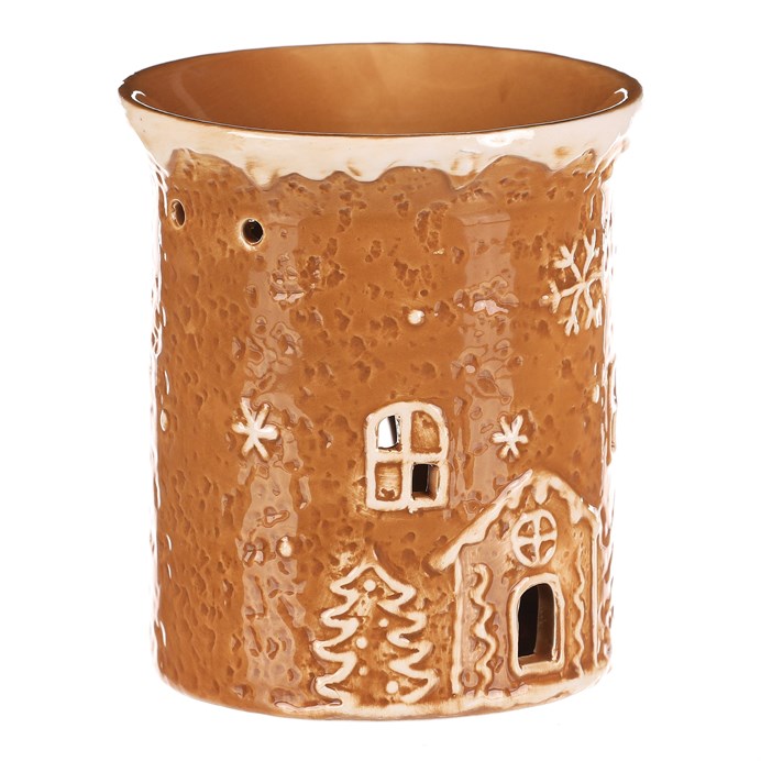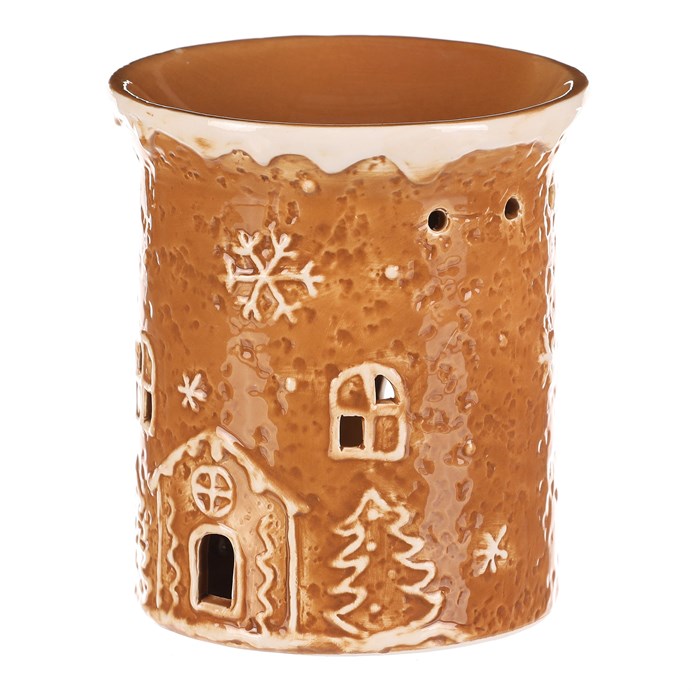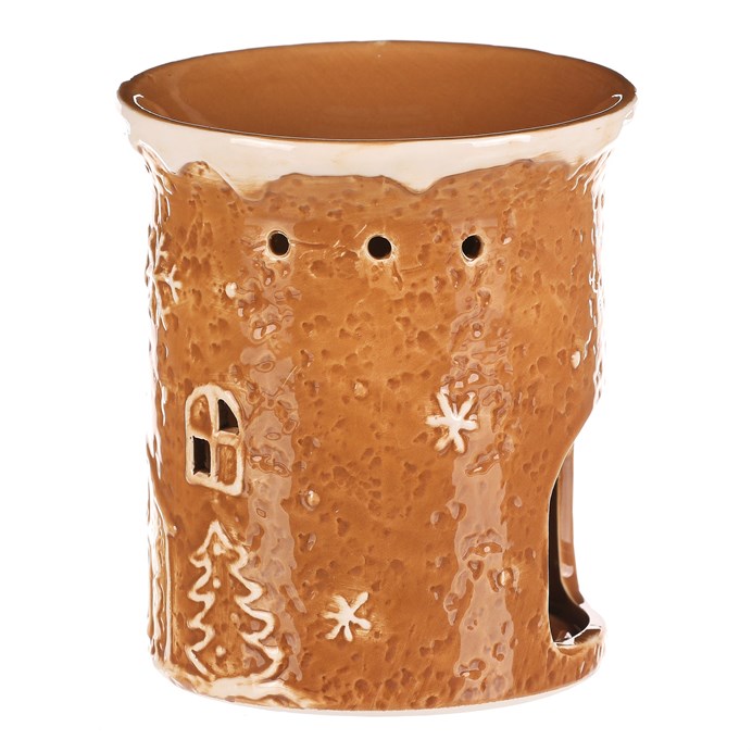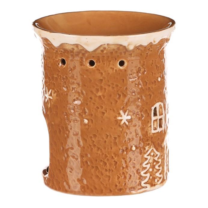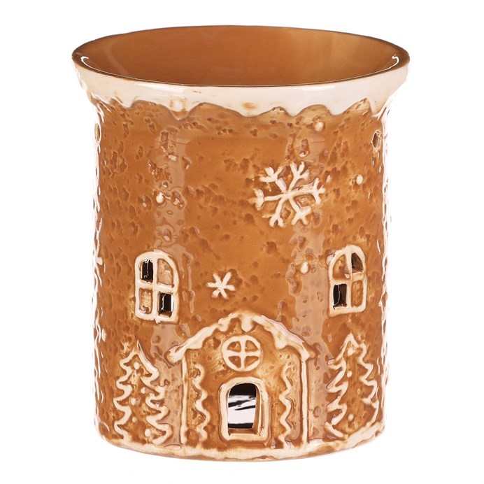 Dotaz na produktAroma lampa, která vypadá jako vytvořená z perníku a ozdobena bílou sladkou polevou, bude perfektní dekorací pro období Vánoc. Je ozdobena zimními motivy, jako jsou vločky, zasněžené stromky a domeček. Umožňuje po zapálení svíčky provonět váš prostor, a navíc vytvořit dokonalý světelný efekt pronikajícími paprsky skrze okénka.