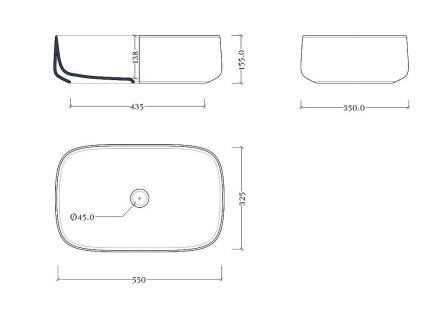 šířka 55 cmhloubka 32,5 cmvýška 14,5 cmmateriál keramikabarva matná černá s povrchovou úpravou Saniglaze (ochranná keramická vrstva, která zachovává předměty obzvlášť dlouho pěkné a čisté)bez otvoru...