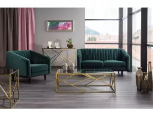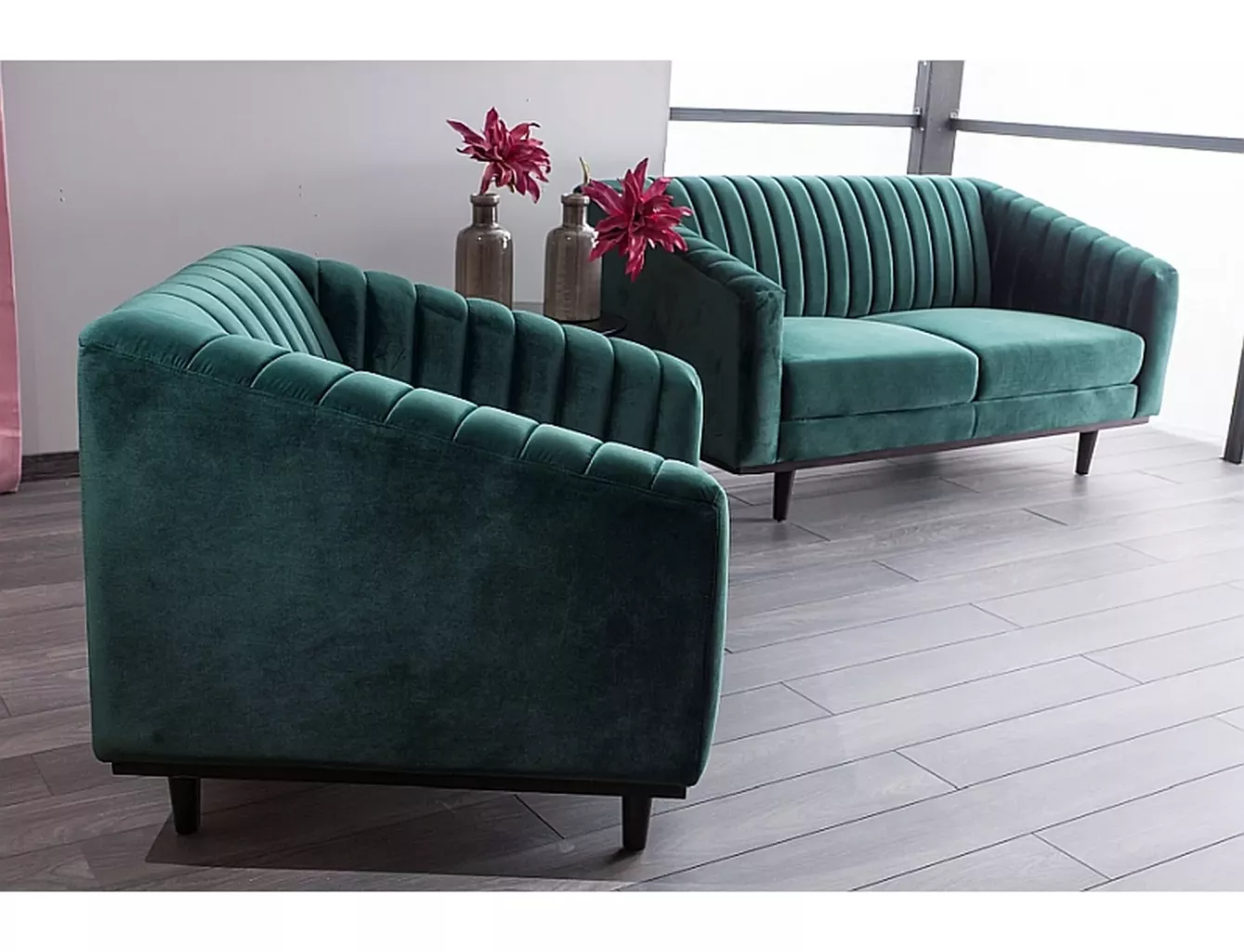 pohovka, sametová látka: zelená Bluvel 78 / dřevo, barva: wenge