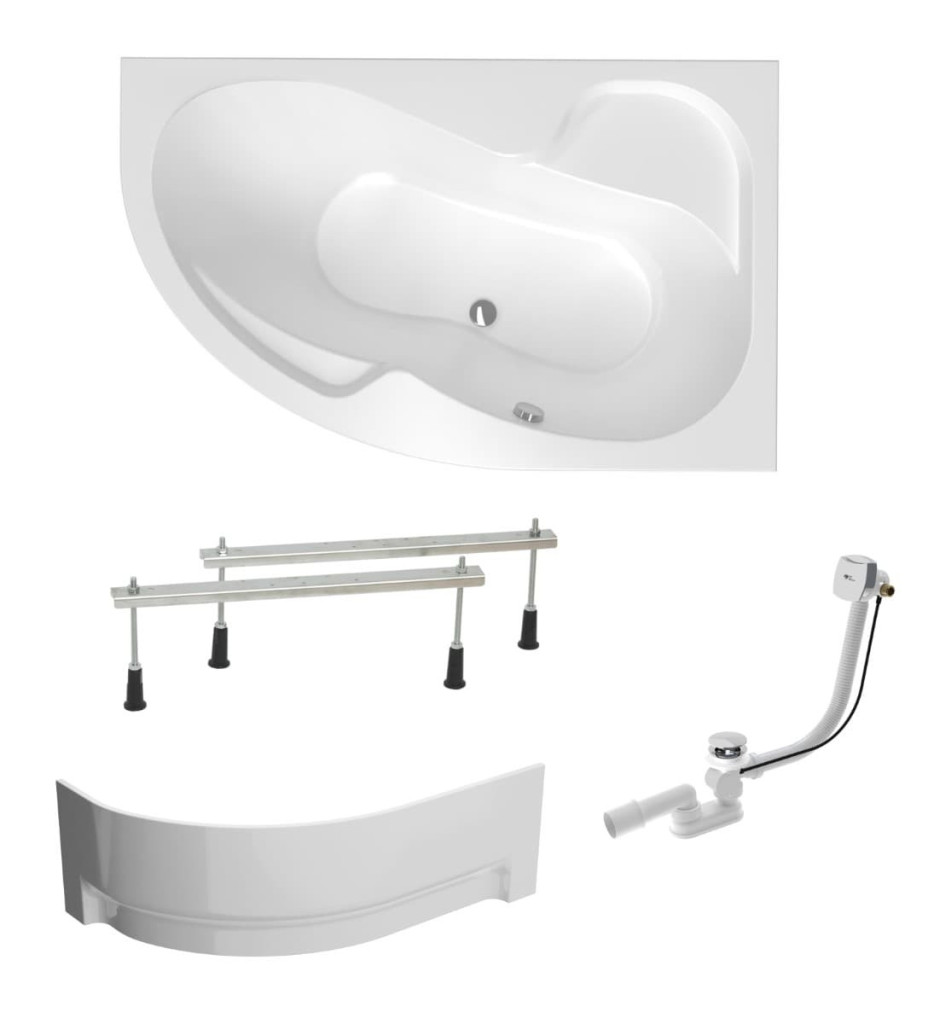 PARAMETRY:Druh výrobku: asymetrická vana Barva popisná: bílá Barva základní: bílá Orientace: pravá Výbava: včetně sifonu s napouštěním přepadem, nožiček, čelního a bočního panelu Balíček produktů:...