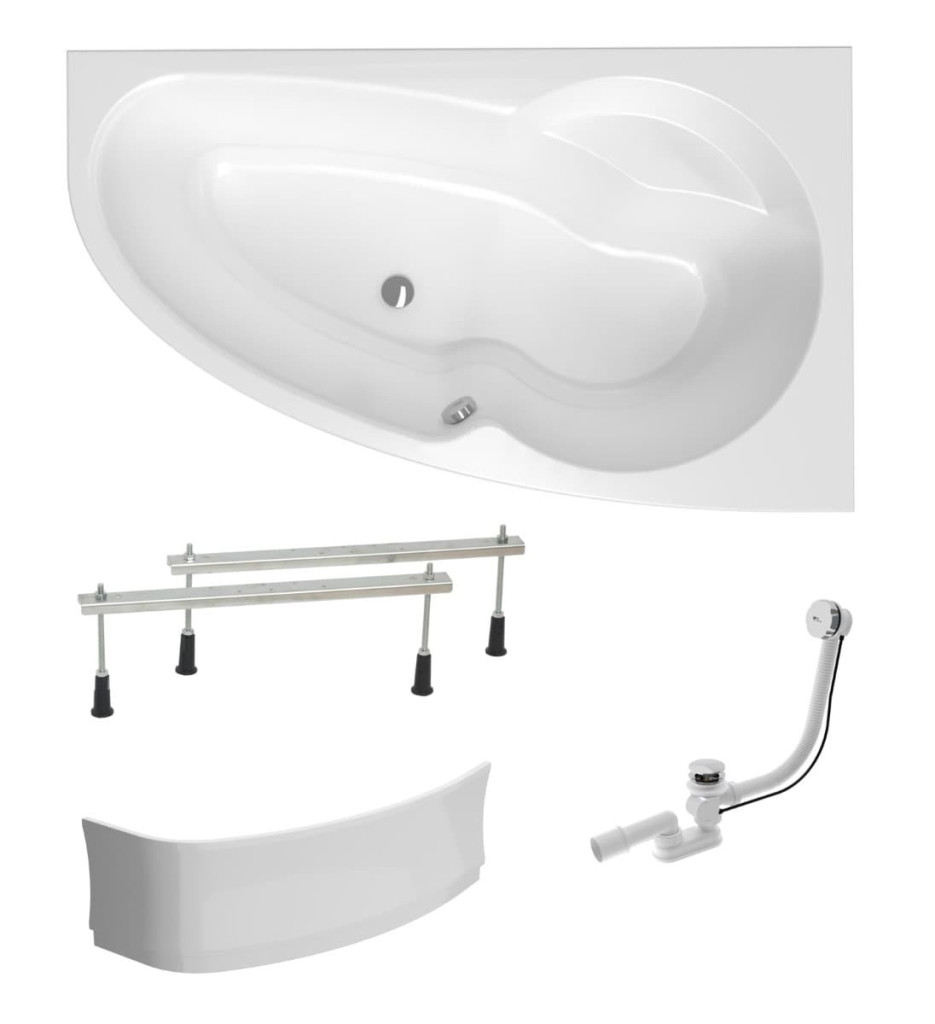 PARAMETRY:Druh výrobku: asymetrická vana Barva popisná: bílá Barva základní: bílá Orientace: pravá Výbava: včetně sifonu, nožiček, čelního a bočního panelu Balíček produktů: ano Šířka: 140  cmVýška:...