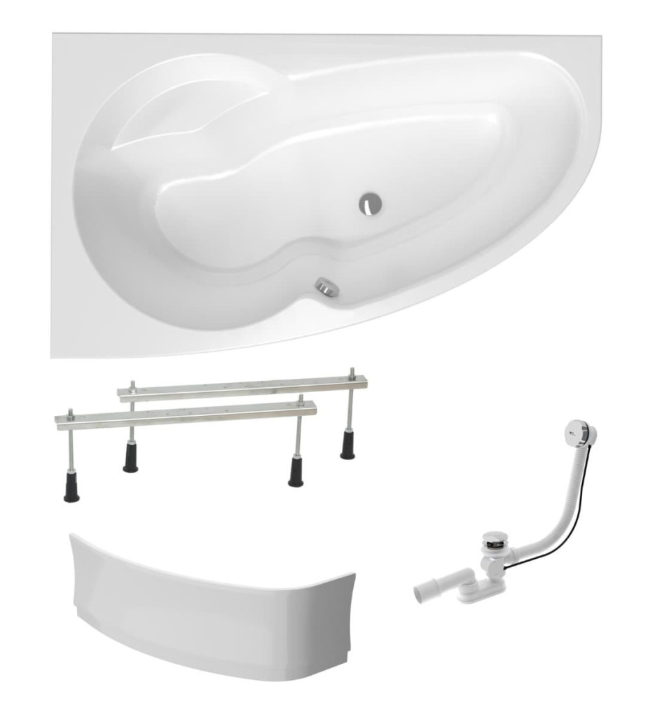 PARAMETRY:Druh výrobku: asymetrická vana Barva popisná: bílá Barva základní: bílá Orientace: levá Výbava: včetně sifonu, nožiček, čelního a bočního panelu Balíček produktů: ano Šířka: 160  cmVýška:...