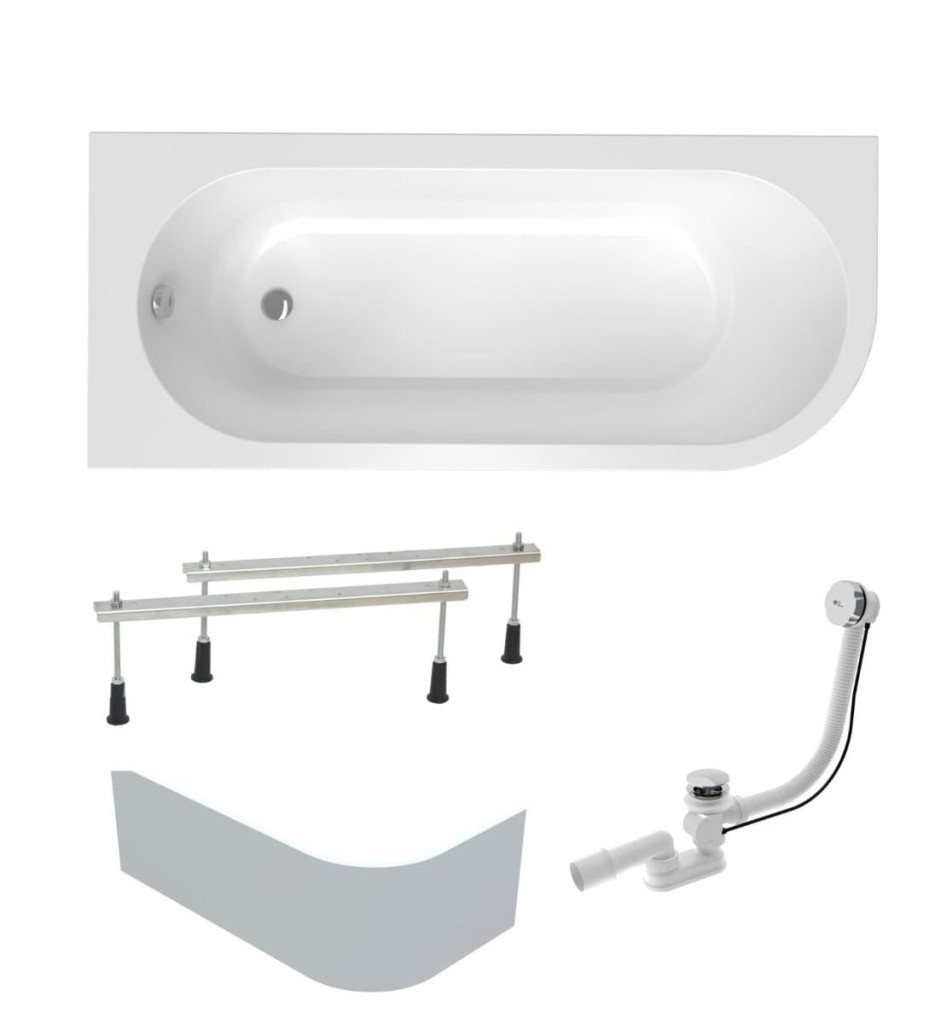 PARAMETRY:Druh výrobku: asymetrická vana Barva popisná: bílá Barva základní: bílá Orientace: levá Výbava: včetně sifonu, nožiček, čelního a bočního panelu Balíček produktů: ano Šířka: 170  cmVýška:...