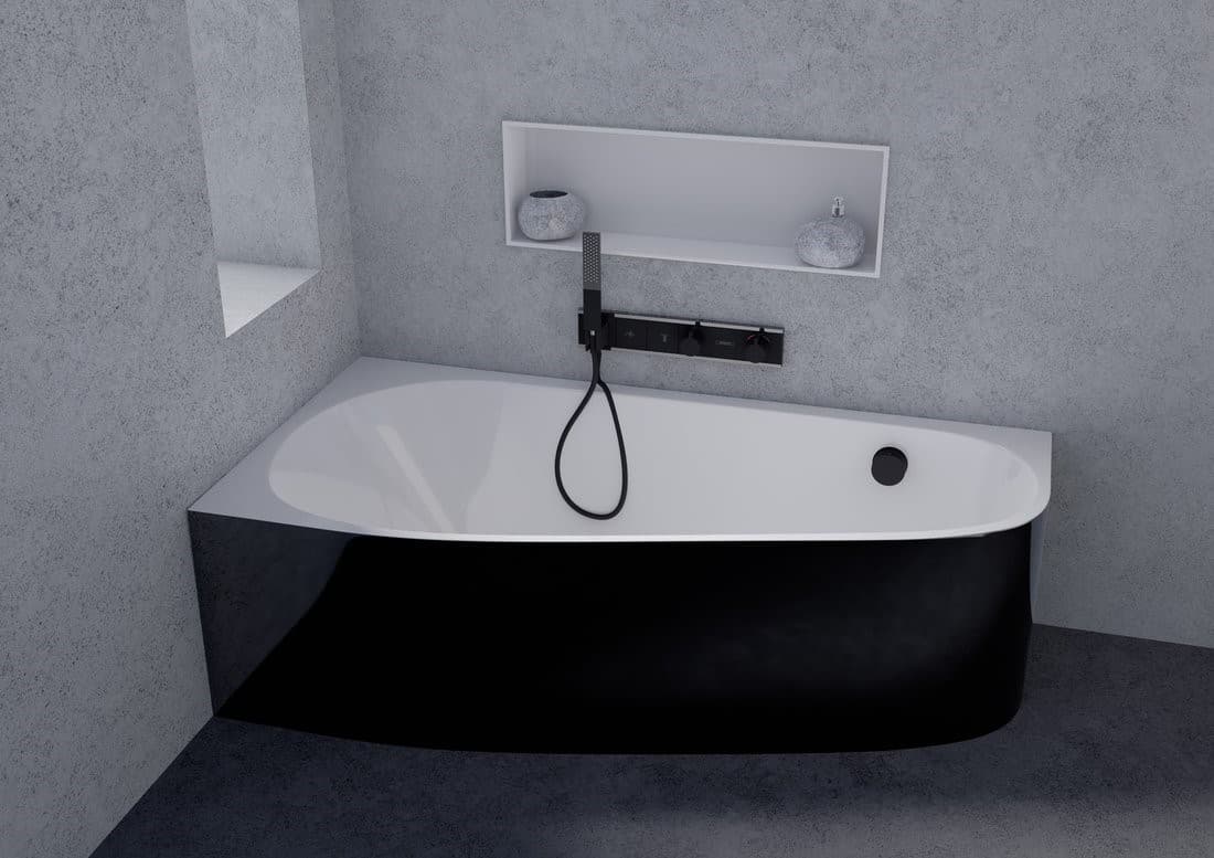 Asymetrická vana Polysan PROJEKTA L MONOLITH 156x77 cm akrylát levá černobílá 20111MB