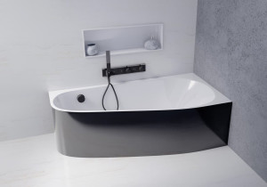 Asymetrická vana Polysan PROJEKTA R MONOLITH 156x77 cm akrylát pravá černobílá 21111MB
