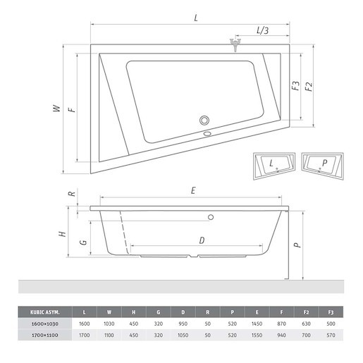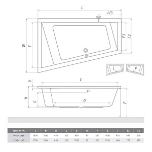 Asymetrická rohová akrylátová vana. Rozměry: 160×103, 170×110 cm (L / P). Asymetrické vany dokáží elegantním způsobem využít maximum prostoru v nestandardně řešených koupelnách. K tomuto produktu vám navíc můžeme nabídnout i designový čelní panel z akrylátu, díky kterému nemusíte vanu obezdívat. Pro snadnější instalaci a vyrovnání vany doporučujeme objednat sadu noh EXCLUSIVE.
