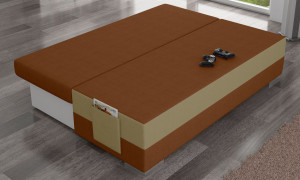 Dotaz na produkt Na splátky ještě dnesAtila je pohodlná a stylová pohovka o rozměrech 200 x 92 x 83 cm, která jistě zaujme svým originálním designem. Geometrický tvar a pevná konstrukce jsou prolomeny originální estetikou. Náš nábytek je k dispozici v kombinaci dvou barevných provedení. U tohoto modelu stojí za zmínku zajímavá povrchová úprava, prostorné dekorační polštáře, prostorný úložný prostor na ložní prádlo (vše podpořeno otevíracím mechanismem DL) a boční kapsa, která se nachází na jedné ze stran nábytku. Maximální pohodlí je zajištěno výplní v podobě bonelu a pěny T25 - obě řešení zaručují správné polohování těla jak během denního používání, tak i při nočním odpočinku na lůžku o rozměrech 200 x 140 cm. Stojí za to mít doma takovou moderní a pohodlnou postel.Látky: Alova 12, Alova 66