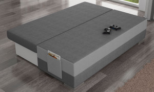 Dotaz na produkt Na splátky ještě dnesAtila je pohodlná a stylová pohovka o rozměrech 200 x 92 x 83 cm, která jistě zaujme svým originálním designem. Geometrický tvar a pevná konstrukce jsou prolomeny originální estetikou. Náš nábytek je k dispozici v kombinaci dvou barevných provedení. U tohoto modelu stojí za zmínku zajímavá povrchová úprava, prostorné dekorační polštáře, prostorný úložný prostor na ložní prádlo (vše podpořeno otevíracím mechanismem DL) a boční kapsa, která se nachází na jedné ze stran nábytku. Maximální pohodlí je zajištěno výplní v podobě bonelu a pěny T25 - obě řešení zaručují správné polohování těla jak během denního používání, tak i při nočním odpočinku na lůžku o rozměrech 200 x 140 cm. Stojí za to mít doma takovou moderní a pohodlnou postel.Látky: Soro 93, Soro 83